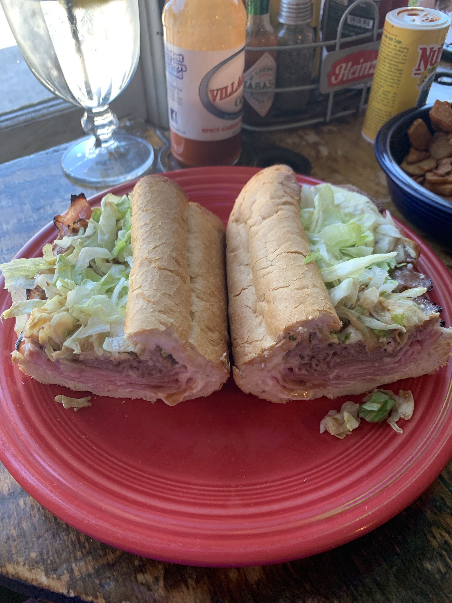 Read moreDon't let the size of this place fool you, that pack in the flavor! They are known for their poboys, but their salads are unbelievably great, too! For seafood lovers, you can't go wrong with the fried shrimp. Pot roast seems to be a crowd favorite, but I love the Club Supreme - it's a traditional deli meat trio with the pot roast gravy added on top! It's not as messy as it sounds. It's perfectly balanced. They have poboy specials each day so you can get a discounted sandwich and try something new. The halves are really like 3/4 of a whole it seems, so it's a huge value. Don't skip on the fresh-cut fries. They are shaped like little guitar picks and are fried in a way that leaves some tender and soft and others super crispy. Then they toss them with a seasoning mix. They also have soft drinks in glass bottles and tons of memorabilia to check out while you wait. You can eat on the porch outside or even get your meal from the drive-thru window, just make sure and call ahead....