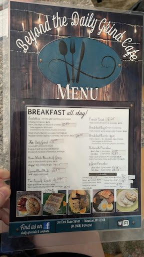 When we travel we like to hit the mom and pop business's instead of large chain joints. We strolled into Beyond the daily Grind late morning. The owner put on a fresh pot of coffee for us and apologized for the three min wait. My fiance chose bacon and pancakes large stack and I was intrigued by the tarragon chicken salad along with a cup of tomato bisque. We were served water and coffee promptly. The coffee was rich and full flavored. Add in we're standard creamers in little packets. Our meal came quickly with nice flat crisp meaty bacon and fluffy pancakes. The syrup was standard packets of maple but there was real butter.. yum. My sandwich was nice the chicken was moist, not to much Tarragon to overpower the salad had the pecans which I enjoy. The coursant was fresh a smaller perfect lunch size. They accommodated the coursant as normally the chicken salad is served on bread.My plate came with a crisp dill. The soup had small diced tomatoes a nice texture with a tad bit of heat. Not a bland soup. Not a heavy cream based but nice. Over all a nice experience.. Too up there game would be nice to have a assortment of syrups and always even with a soup and sandwich serve with cracker. Give this place a try.. also it's a Christian based owner a thumbs up...