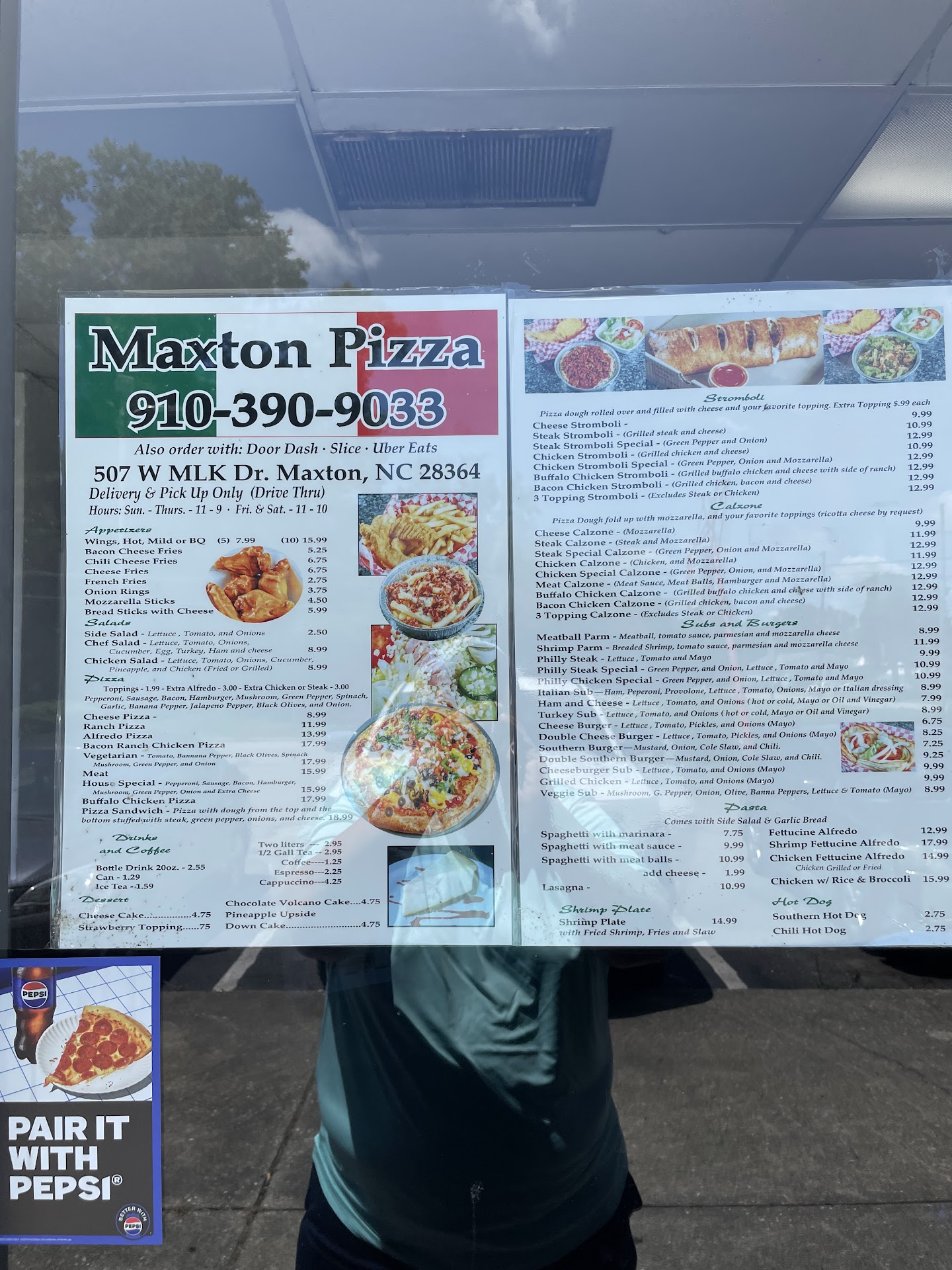 ย ย ย Read moreI'm new to laurinburg and I've been hearing such great things about Maxton pizza, so tonight while hungry at work I decided to door dash and try them for the first time. I am so sorry I did. I got the Philly steak sub and it was just a sloppy mess. The sub was in the foam container open faced, not cut in half, and over stuffed. The bread was soggy. As soon as I tried to close the sandwich to cut it in half, it completely broke apart. When I tried to pick it up, everything just fell. I tried to take a few bites, and it was just disgusting. The meat was bland and unseasoned, and there was just way too much stuffed in that small soggy sub roll. And now my stomach hurts. Absolute waste of $15 and will never be trying them again. What a terrible...
