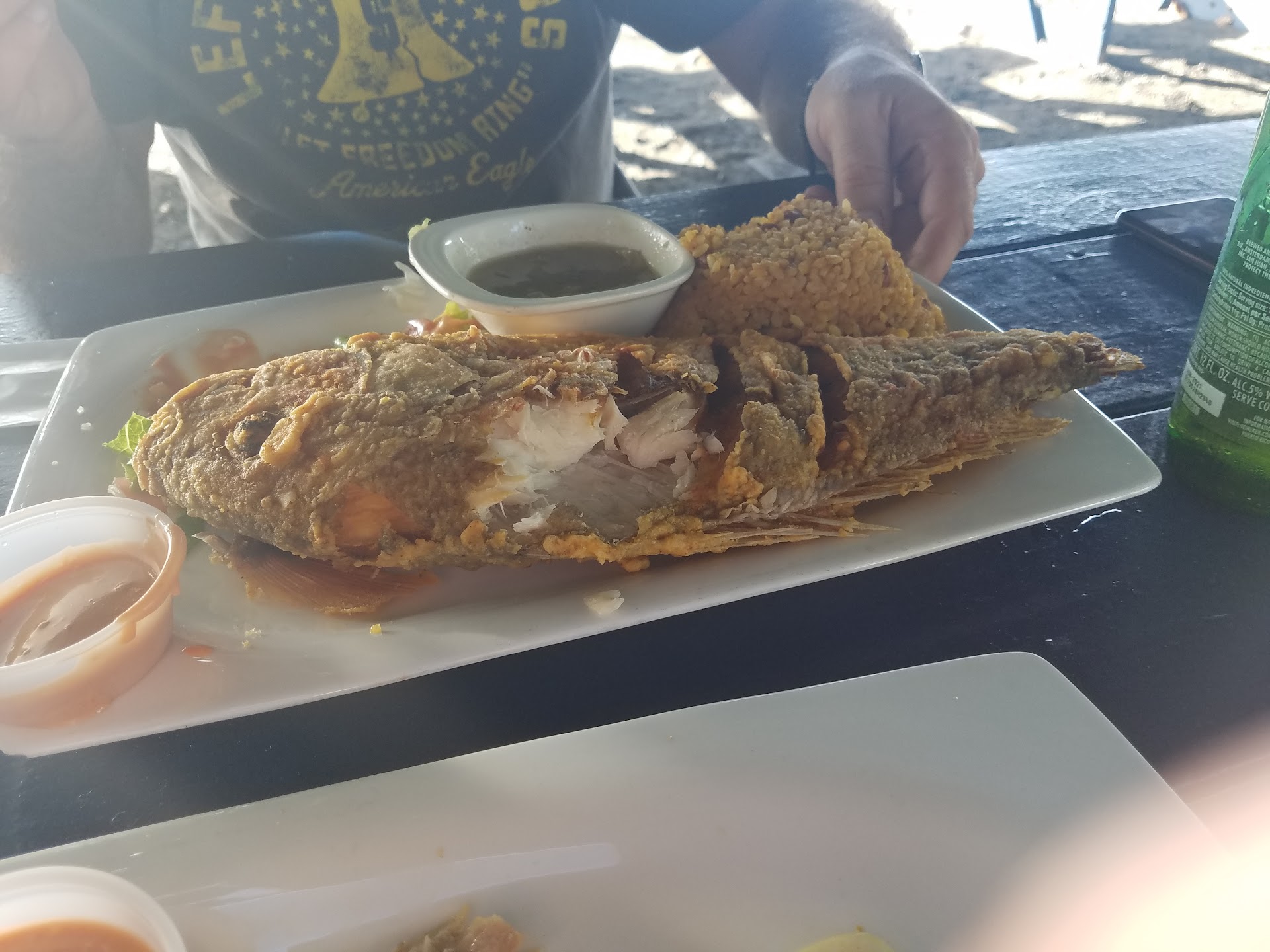 Read moreStopped here because the restaurant we were going to down the street was closed. I'm so happy it turned out that way because this place was fantastic. You can never go wrong sitting steps away from the water and the tables and picnic tables were comfortable and gave a nice, chill vibe. Service was terrific. Had mojitos and Sangria and both were made very well. The Papa Playeras with chicken and beef appetizer was more than enough for a meal and it tasted amazing. Plus, the curly fries were homemade, so even better. I had Pavochon (so tender it melted in my mouth) and my husband had the fish of the day, which I believe was Snapper. His came with some kind of sauce on the side that had thin strips of pepper and onion in the bottom and it tasted amazing on both of our meals. This has became my favorite restaurant in Puerto Rico so far. We will most...