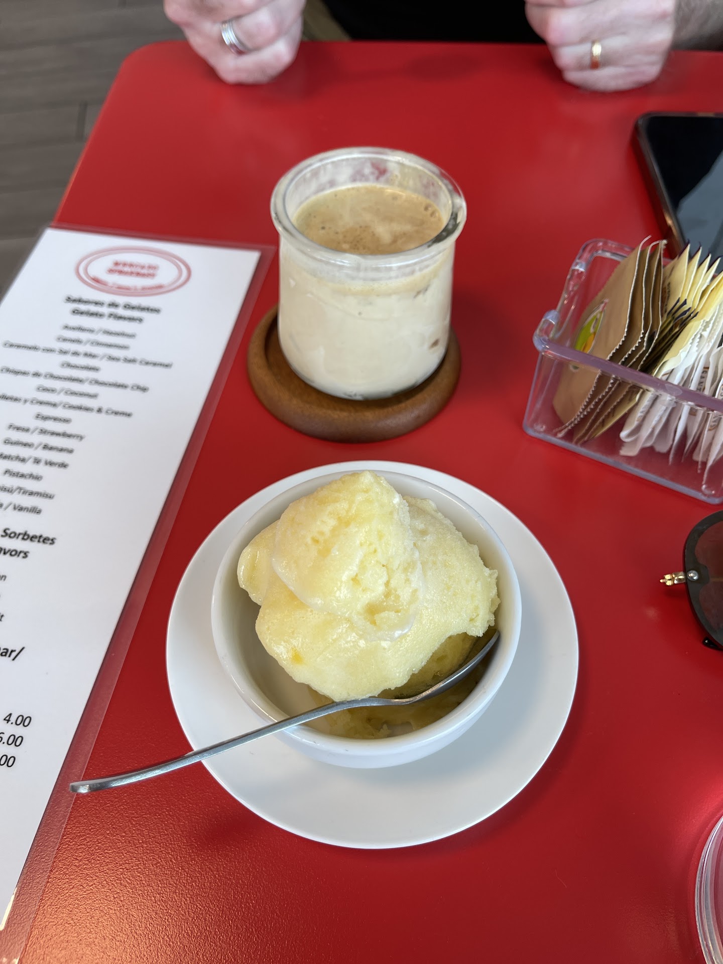 Absolutely loved this place! The gelato was amazing, they let us sample as many flavors as we wanted before deciding. My iced latte was also excellent. The customer service was top-notch; Jose and Beatriz, the owners, were super friendly and accommodating. They even took us to see the speakeasy in the back, which was such a fun surprise! The drinks there were incredible, and bartender CC is the best… creative, personable, and makes outstanding cocktails. Highly recommend...