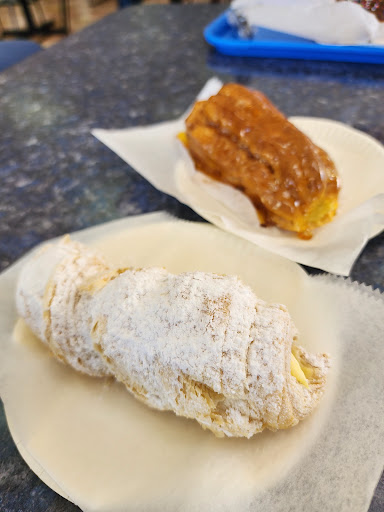 12/14/23 Lunch. While our friend's father was seeing the doctor, we ran to this bakery for cappuccino and a pastry. The bakery is a popular place, so it has a lot of foot traffic and was not very clean - but that seems typical for the island. The pastry was too sweet for us, but you can tell it was well made. It has a light cheese flavored filling next to a sweet cherry filling.
