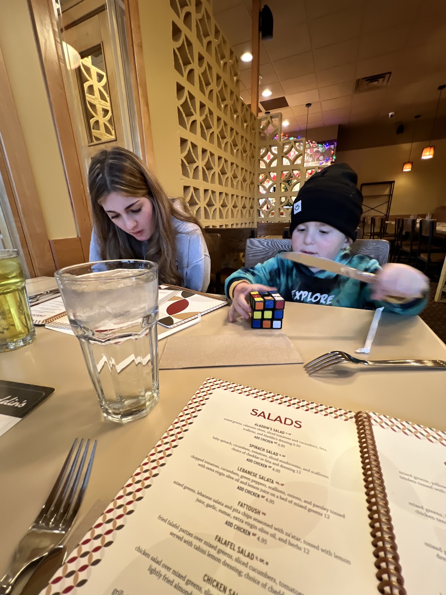 Read moreIâve been ordering take out from this Aladdinâs location for many years (and theyâve never forgotten anything and itâs always SO good) but yesterday we decided to venture to eat on a dreary Sunday and weâre greeted by their manager (who was dealing with multiple things at once) yet still managed to greet us and seat us. There was a pristine section of 4 tables in a more private area and the manager took note that my toddler is somewhat of a roamer and really kindly gave us that entire section. I have an autistic toddler so we have been out to eat just a handful of times because sometimes you donât know what to expect, adults arenât very patient and understanding, and sometimes emotional exhaustion ensues and you have to cut your meal short. We didnât have to experience any of that at Aladdinâs 𼚠I canât say enough good things about our server Charlie. He so graciously let my Nico play (and take up) all 4 tables in his section, didnât blink an eye when Nico collected all of the silverware to play with, and was completely unbothered by my teenager who ordered something every time he came back around lol he was ON TOP OF IT. We never waited for a water refill or a side of something and he was such a humble, kind, genuine and patient server with my toddler, teenager and two adults. Our food was superb (every single thing we ordered) and even my toddler sat down and ate all of his food with us (a rarity). We now have a place where we can have a meal and take a break from everything, and I couldnât be more thankful. Amazing staff, perfect food, superb service and really peaceful energy. Thank you guys!! đĽš
