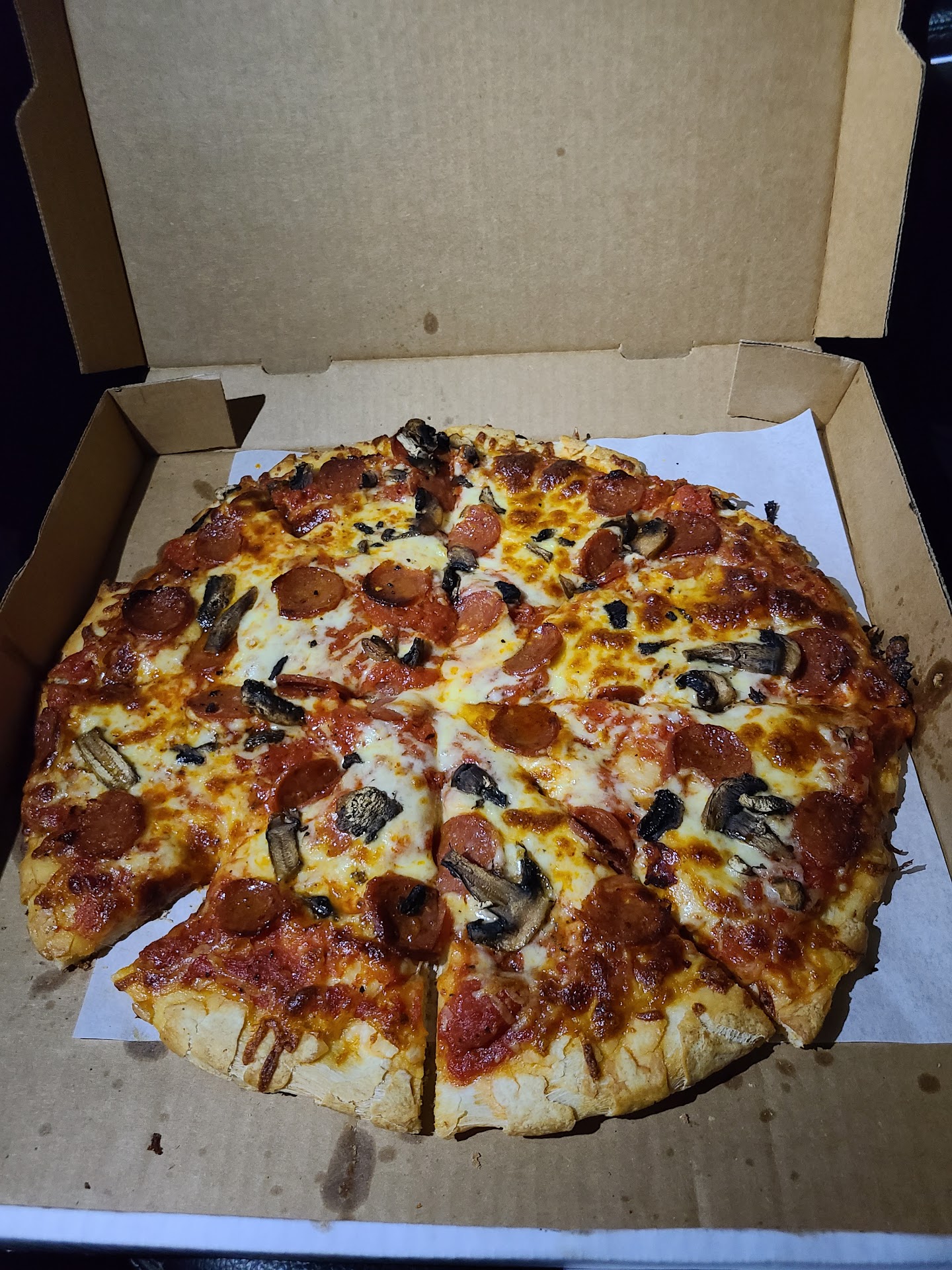 Let me start with the service. I was here to pick up an order I placed online of 3 pizzas. I'm giving 3 stars because I came in and stood at the counter waiting to be acknowledged at least 3 minutes. The only other customer there was sitting down. Workers were present and actively working and made eye contact with me just didn't voice or offer a hand signal of like "we'll be right with you" or "just 1 sec" or something along those lines. That's it. Will it stop me from coming back? Not unless I see this as a pattern. Maybe it was a 1 off. The pizzas were great. My personal favorite is the pepperoni and sausage. My guests loved the veggie pizza. No complaints whatsoever on food. I usually eat only pepperoni pizza but at this place, it's something about the pepperoni/sausage pizza that makes my...