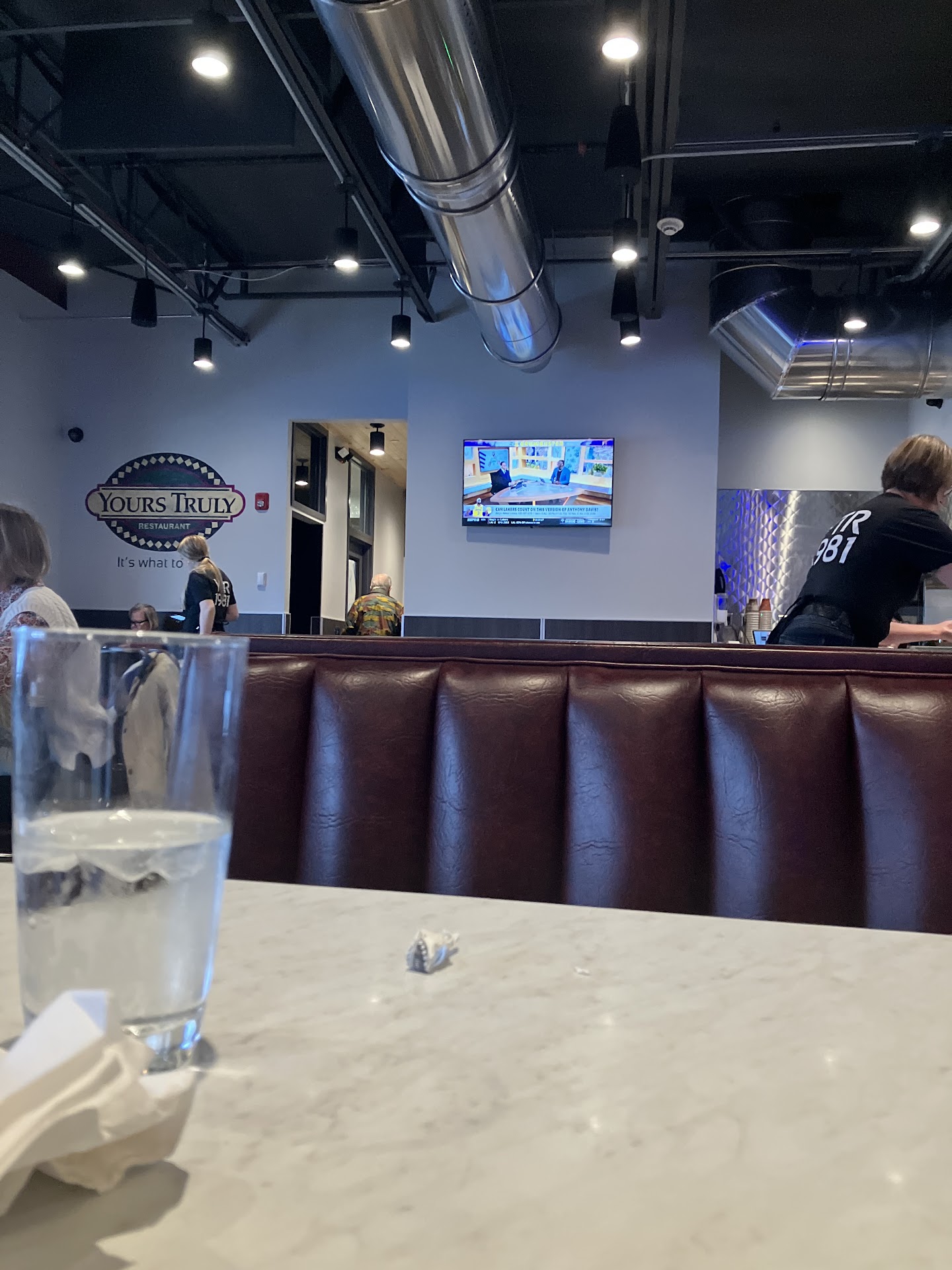 Read moreWalked in about 10:00 this morning, saw two empty seats at the bar with half-finished meals in front of them, waited. Waited. Waited. Servers rang people up, hostess walked by. Waited. Waited. A couple walks in behind me. Hostess comes up and puts THEM on the wait list, because I am apparently invisible. I finally get her attention, and I asked her about the two empty seats, she says, "Oh, I think they're done, we just have to get them cleaned off." So I wait, about another 5 minutes, still standing right behind the seats in question, mind you. A pair of women walk in, and standing behind me, ask the SAME hostess that I had spoken to not 5 minutes ago about the same seats. She says "Sure, they're open, we'll get them cleared off right away." This is after I had been there a good 10 minutes. Of course, the two women realized very quickly that I had been waiting for the seats, because they are apparently not as dimwitted as the staff. They had JUST walked in, and could tell I was waiting to be seated, while the PAID, TRAINED staff, especially the hostess, scurried by in blissful ignorance for over 10 minutes. The women offered to let me sit, based on the far-fetched notion that I should get to, by virtue of having been there first, but at that point, I was done. I had wasted my time, and wasn't about to waste my money. True story.