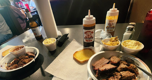 Neither of us found the pulled pork tasty or appealing. As such, we waited for our waitress to stop by so we could ask for a to-go box. She was nowhere to be found. I waited 8 minutes and finally went to the take out desk and asked the cook for a take out box which he provided immediately (at least our dogs will eat good tonight).
