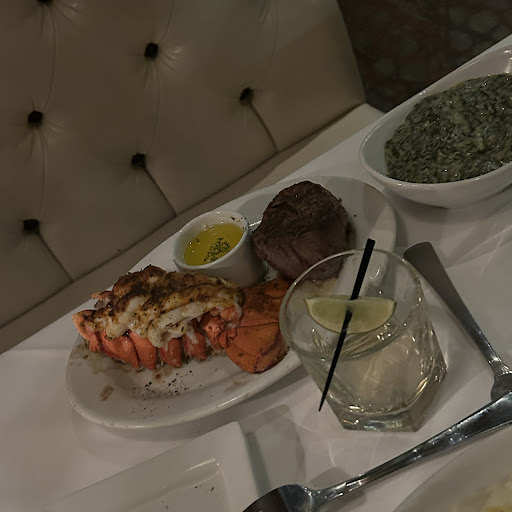 My mom ordered the prix fixe (which I obviously had to sample). Starting with a very refreshing caeser salad. Plenty of parmesan, it wasn’t dry or drowning in dressing and the lettuce was very crisp. The (medium rare) filet mignon and lobster were cooked to perfection— no rubbery lobster here, thankfully. And she got the creamed spinach as a side. I always get creamed spinach at steak houses, so I’m a bit of a snob, but this one was flawless- not too salty, and perfectly creamy as advertised.