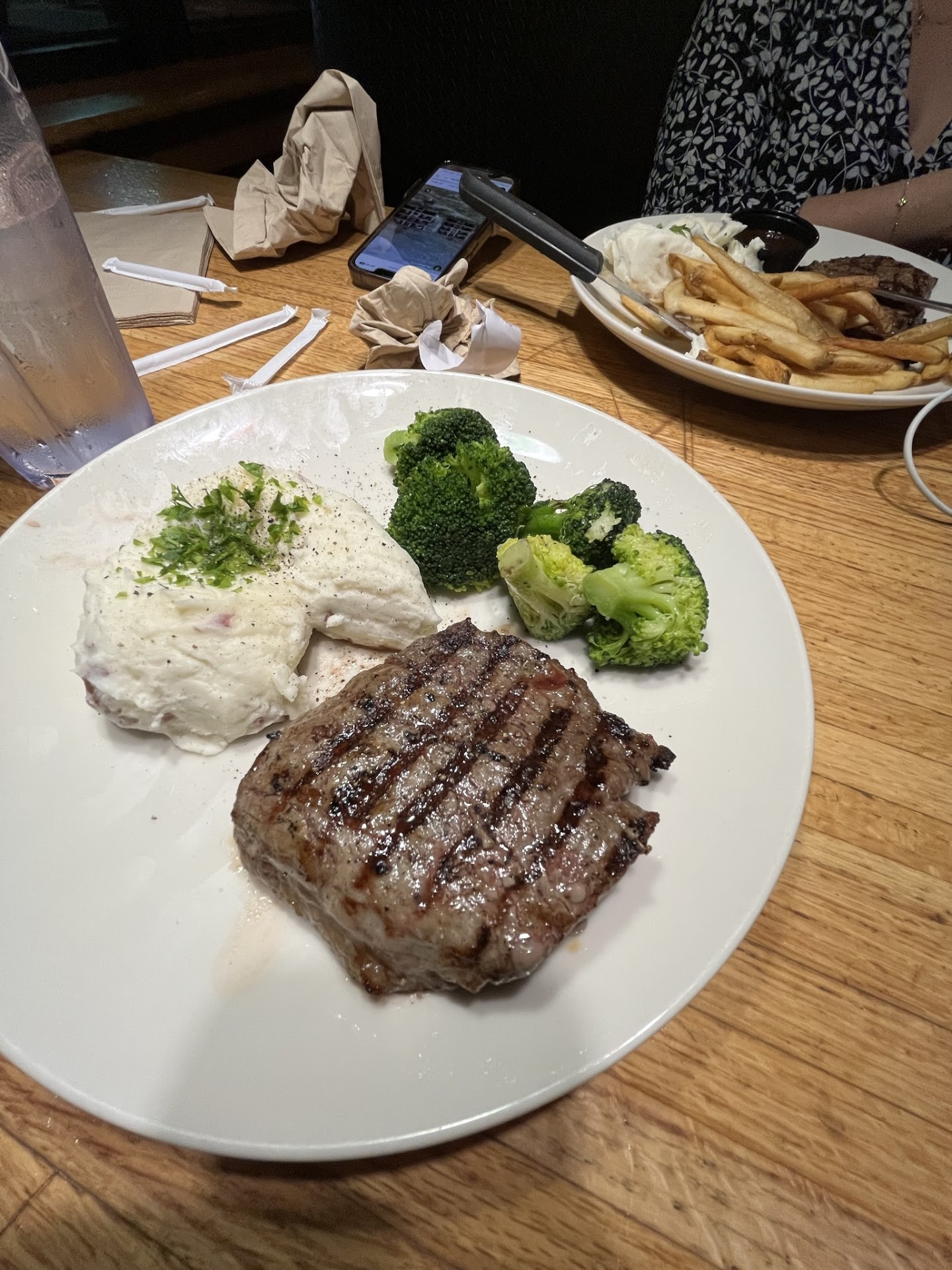 Read moreI went to Applebee's with a good friend of mine, it's located on N. 10th street, a couple of blocks from Violet Ave. We ordered our usual iced tea. We were starving so we ordered a burger and fries for an appetizer. My friend also ordered a house salad to start with, which he never received until we mentioned it to our server. For our meals He ordered the Shrimp and Parmesan Sirloin for $19.59, he also subbed his veggies for pasta. I ordered the Bourbon Street Chicken and Shrimp $14.99. I also ordered a side of garlic and lemon green beans which I never received until I was able to mention it to our server. My friend never received his shrimp nor the Parmesan sauce on his Steak as mentioned in the menu. Once he informed our server of the missing shrimp, she brought out the Shrimp way before I ever got my green beans. I finally received the beans half way through the meal,and they were pretty good. I really like my dish because the blackened chicken was cooked perfectly and had a great flavor. I loved the grilled onions and mushrooms that came with the meal. Oh, I switched the mashers for fries and glad I did. I tried my friends mashed potatoes and they were super stiff and I couldn't taste the roasted garlic at all. He gave me a piece of his Sirloin Steak and I was surprised as to how tender it was. Over all it was a very good food experience, but not so much on the service. Would I go back again, Yes! And I would definitely order the blackened chicken again or...