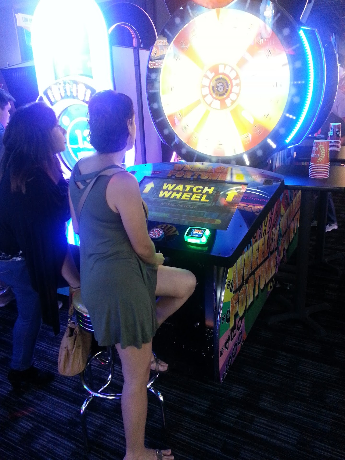 Ā Ā Ā Read moreThis is our first time at Dave & Buster's, and it was really good. We were seated right away, but we did get there before the lunch hour rush. The waitress was friendly, took our orders and got the kids' food out first (at our request). She brought us our water while we waited for our drinks. I ordered a Crown apple smashtail which was awesome, it was not too sweet but you could definitely taste the apple in the Crown and the granny smith apple flavor. My husband ordered the wildberry smashtail which was good, but not as good as the apple one. The kids ordered kids' burgers and fries and the pretzel dogs with a snow cone kind of drink that had a lit up cube inside of it which they got to keep. We ordered the chicken quesadilla appetizer which was pretty good with the salsa. It was a little pricy at $70 for the appetizer, the 2 drinks, 3 kids' meals and the 3 kids' drinks. But it was a birthday celebration so not too bad. The game room was even better. Very clean and everything in working order (but I see from other reviews that it's a brand new location). There were classics like Space Invaders and Pac-Man but with huge screens, like 10 ft tall huge, and new games like Mario Kart. We bought one card for $40 which had 250 tokens on it (I think it was 250), and between the 3 kids, it went fast. I don't know how many tokens each game took, but it was obviously more than 1 or 2. It was still a lot of fun. The tickets they won from the games were automatically put on the card, and they quickly got over 800 tickets. We thought that'd get them something good, but no, the good prizes all required a lot of tickets. My son got a kazoo which didn't work, and a sticky, wall crawling spider which didn't work either, so he was sorely disappointed. The candy was full size so it took a lot of tickets, too. But in the end, it's not about the cheap prizes but about how much fun we had playing the games. The women's bathroom was very clean, too; but the music was way too loud. We had to ask the waitress to repeat herself several times, and we couldn't hear each other talk until we sat next to each other. Maybe we're just old, maybe it was too loud, but...