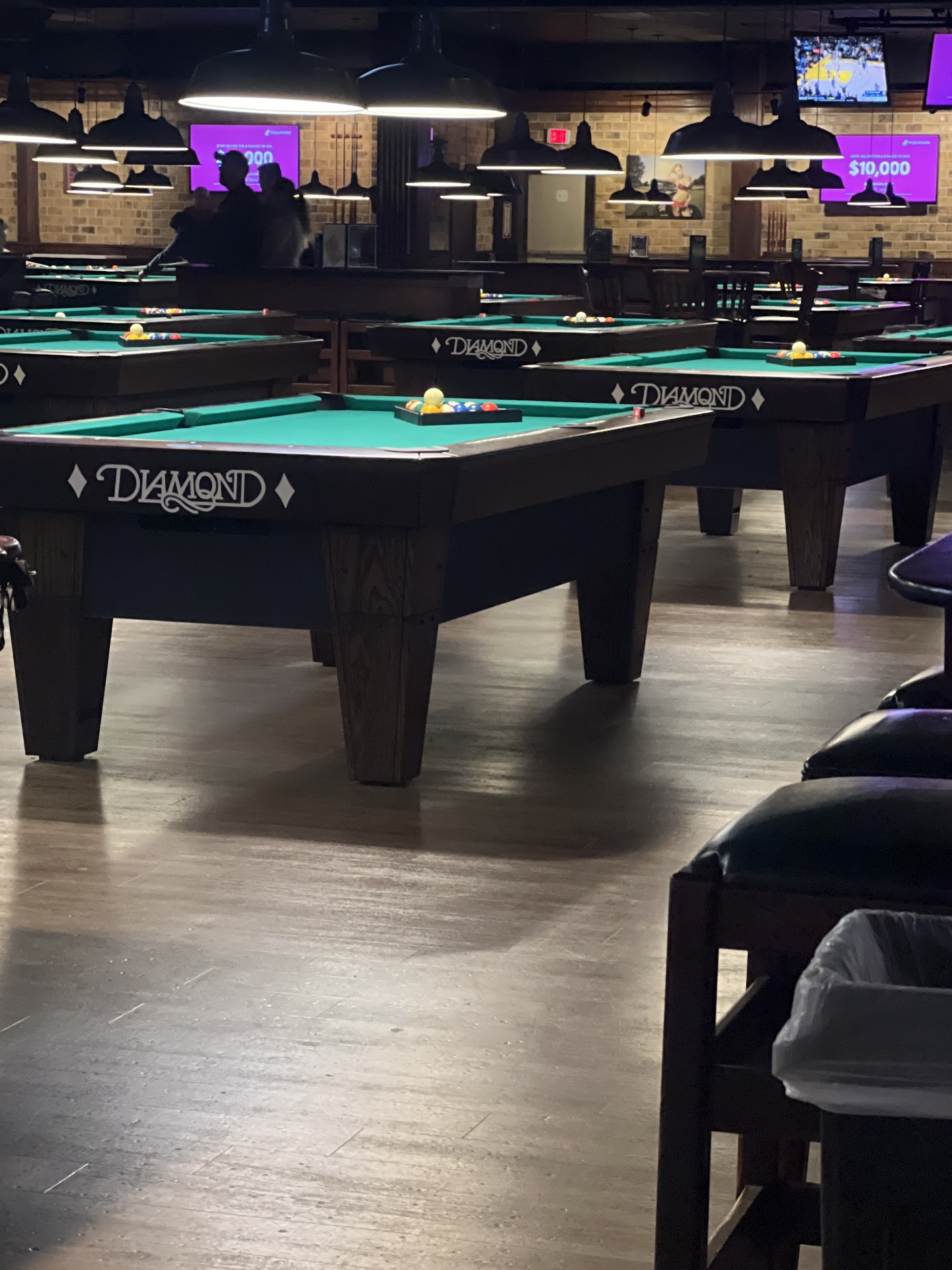 Once we walked in the gentleman at the bar was really nice and helpful he helped us choose our drinks and gave us specialty drink that tasted good. Mind you I’ve never been here before if was my first time. I saw a pool table that looked empty so I asked the waitress wearing a black cheetah print shirt with a black jacket if it was available a simple question she replied and said “if you want a table join the waitlist” and she automatically gave me the worst attitude honestly I was shocked of the tone of voice she used with me I then saw another pool table open so I asked her “can I take that table over there?” She then replied “ i don’t know what you’re asking me, I don’t know what you’re talking if there’s a table over there then I don’t have anything to do with that” she rolled her eyes and walked away, honestly she made me feel embarrassed and killed my vibe a little. Other than that experience We decided to join the waitlist for a better table that wasn’t crowded the curly haired server we got was really sweet, friendly, and...