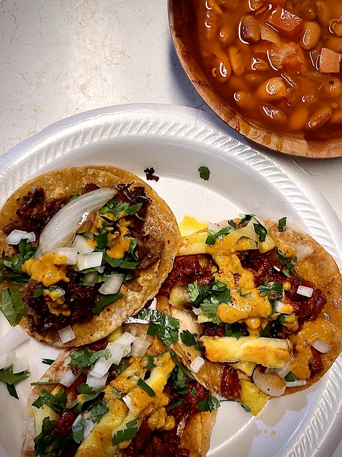 Read moreThe place is street..as street can get...but sometimes these places are the bomb for hidden gems in food experience!! Well..this place was not quite the place for a 5 star taste..i struggled to give a 4...but service was fast...place was clean(i avoid rush hour like the herpes) but food was meh.. The pros is that it serves 6 tacos...fully loaded with the essentials to top them off...i have seen many places scaling down quantities to 5 tacos...or creatively giving you 4 tacos and other things to get ur stomach full of everything but tacos😆😆... Good enough to recommend...and probably come again in a pinch or while around here in Milpa land....but i won't seek out and drive the 10 miles for tacos.... Prices was proper..about 16 smacs gets u an order. Free sida beans 🫘... So come 1 come all...its a great place to fill ur empty stomach on good ole fashioned street...