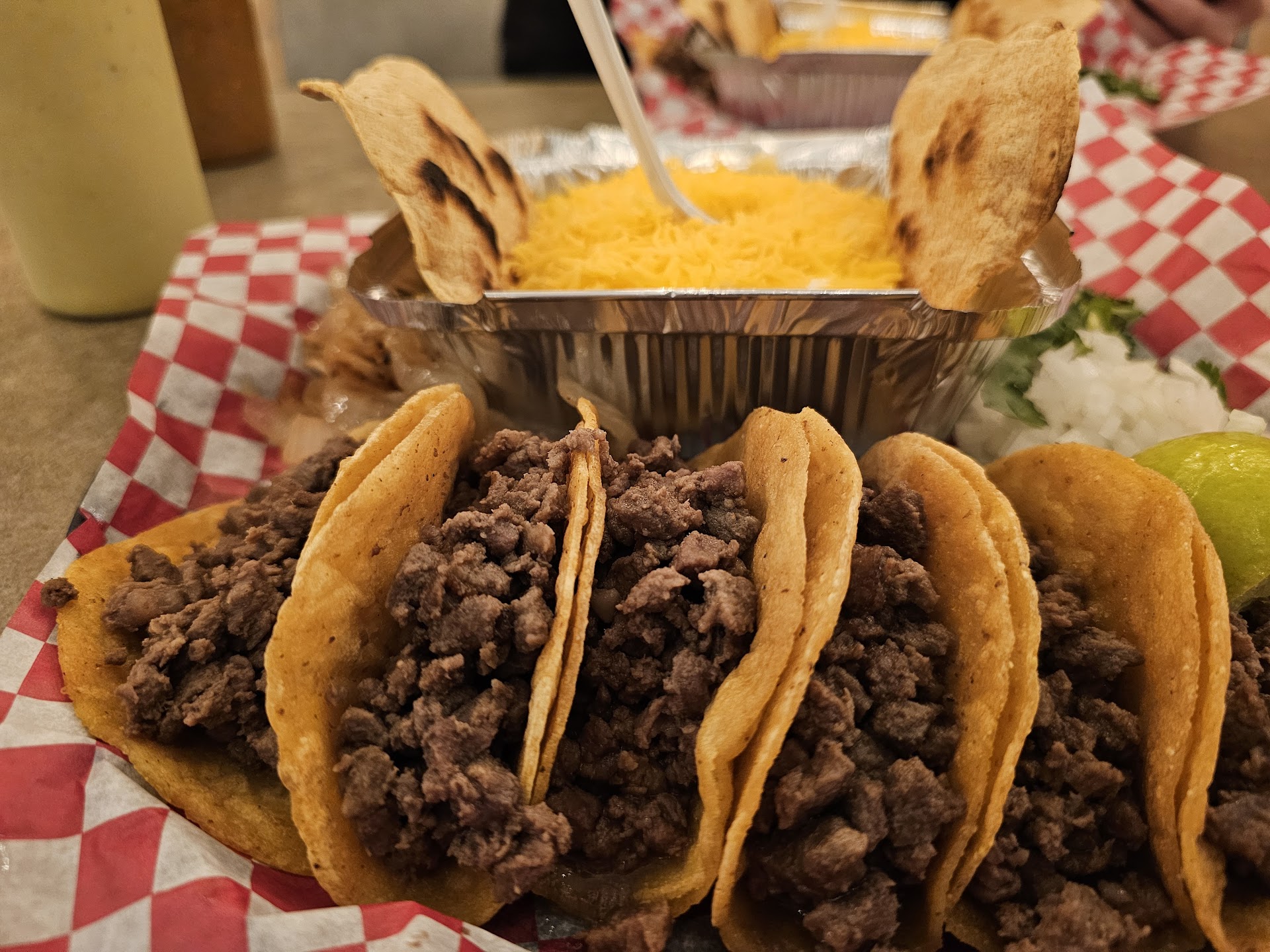 They're not the most flavorful nor the most loaded tacos out there. The service was decent but they have so many cars waiting in line that the server only came over a few times.