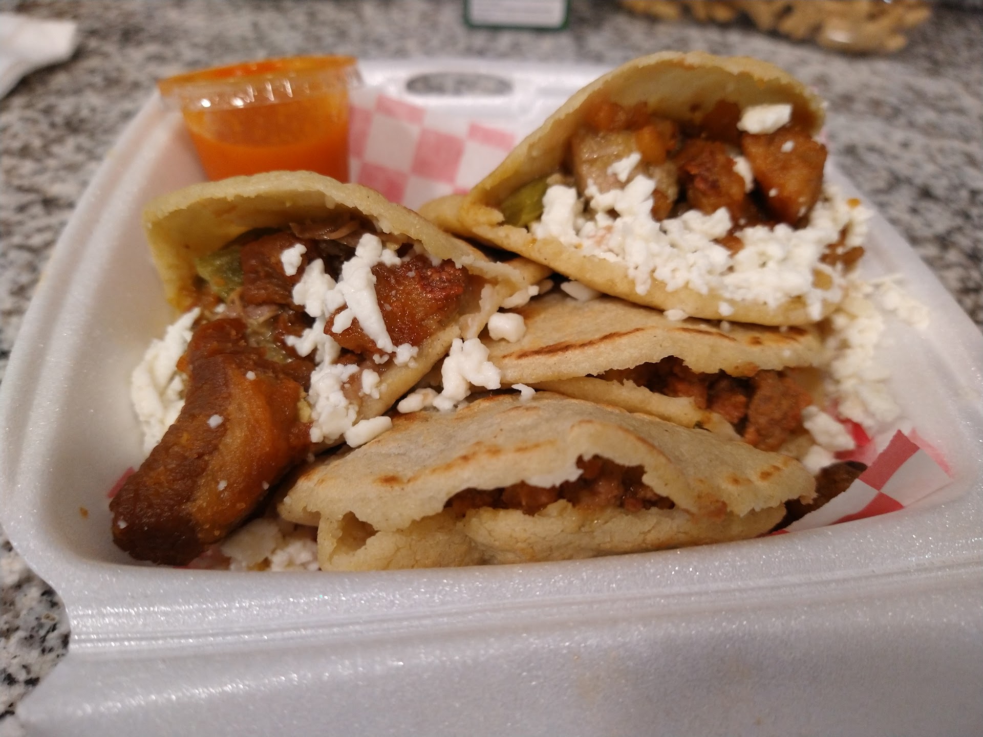 I enjoyed the gorditas I ate there. The salsa isn't crazy hot but spicy enough for me especially if you're not a fan of spicy chile, I did shed a tear from it but it was worth it. The gorditas are cooked just right, not soggy and not extremly crispy. Very tasty and delicious. They have a variety of fillings to select from and they offer a couple of sides too. You can purchase family deals, breakfast gordits, lunch gorditas, and kids combos and adult combos. They also sell desserts. Drinks are fountain drinks, aguas, soda cans, and coffee. It is a small place but it gets a crowd. I would definitely eat here again because it made me think of my abuelita making gorditas and stuffing them with deliciousness and wanting to eat...