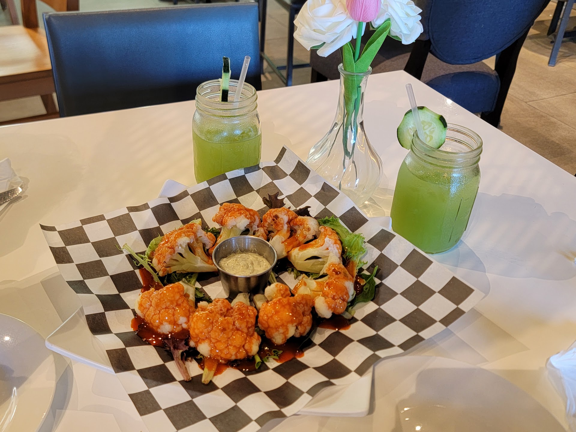We got the buffalo grilled cauliflower appetizer, and it was really good. Their Buffalo sauce was excellent. Cauliflower was cooked very well, had some nice charr on it, but not too much and was nice and soft but not too soft.