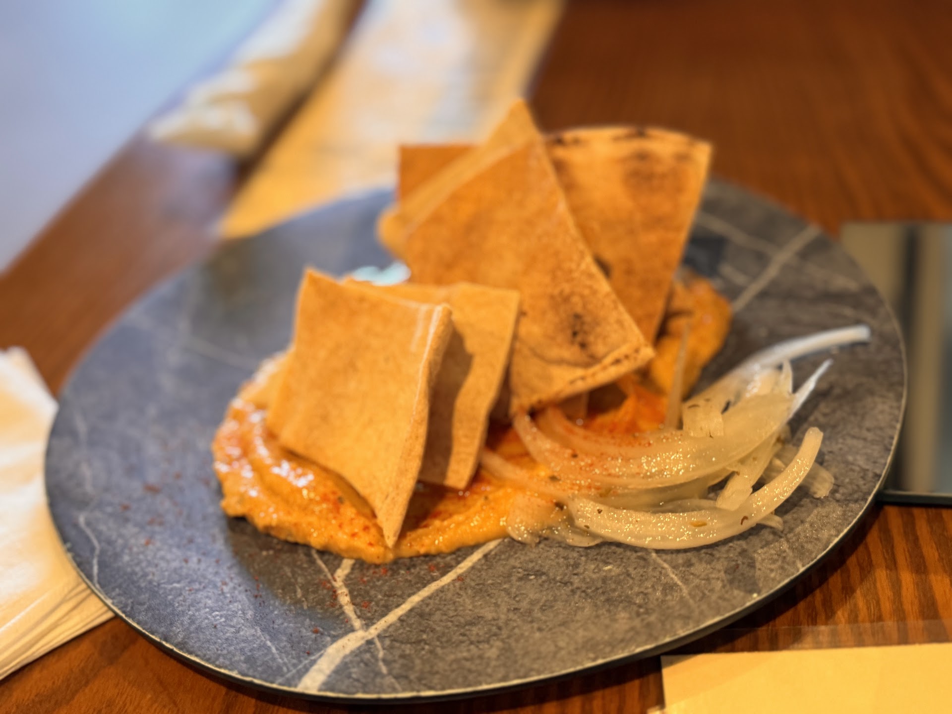 We started with humus and fried cauliflower. Thr humans tasted homemade, well season and not to oily compared to a lot of other homemade humus I’ve tried. They recommend the cauliflower and it hit so good. Again not oily at all but plenty crispy. The cauliflower was firm not overcooked and mushy and it was dressed in buffalo sauce. Would definitely recommend. This was pair with a cucumber water and a hibiscus tea (Jamaica) both definitely made fresh and not too sweet how I like it. The cucumber water was so damn refreshing, I’d come back for just a cup of this.