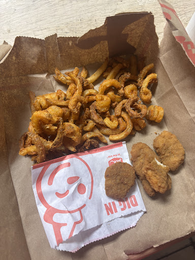 I stopped here late at night because my little boy was hungry. I normally don’t eat food or buy from Jack-in-the-Box But since it was the only thing open, I stopped here. Everything was fine until I got home and opened the food up. To start off, the chicken nuggets are dark as hell! EVER HEARD OF CHANGING YOUR OIL???? The inner-breading has a gray or dark tone to it. Don’t even get me started on the fries. I had asked for regular fries. They gave me curly fries, which would’ve been fine but they looked like a bunch of crunchy leftover crumbs that are left at the bottom of a batch. I felt bad giving this to my kid. Don’t buy food here. It’s disgusting and a waste of money. Any health regulations in place??? Management needs to do better. Shxxtty quality...