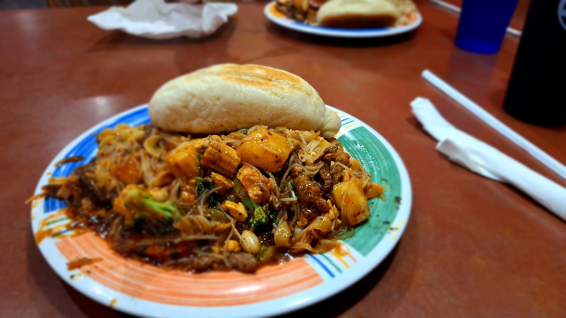 This most recent visit was great. The cook was upbeat and cooked it just right. I almost always get sesame oil and the "House" sauce extra spicy. This time was no exception.