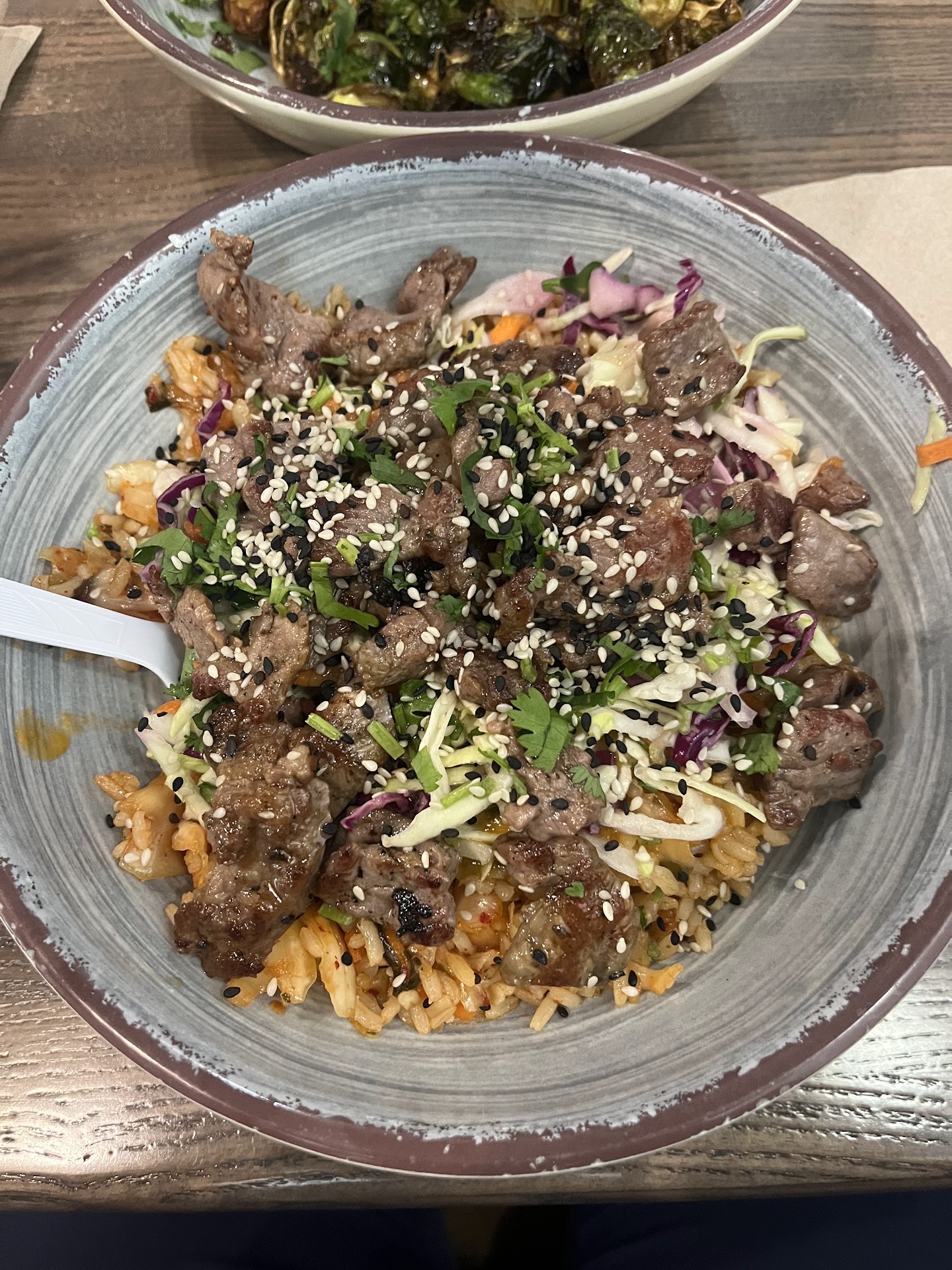 Read moreIf youâre in North McAllen and looking for a place to eat, stop what youâre doing and just come here. I havenât tried a whole lot of menu items, but the kimchi rice and Brussel sprouts are phenomenal. I ordered the rice with ribeye whereas my girlfriend got the Korean karnitas. I think the beefâs a lot better than the pork options here; might have to try the other proteins to be certain beefâs best. If you go off of cartoons or movies, Brussel sprouts might not be very appetizing. But if you go off Nuriâs fried brussels, theyâre the best appetizer to start a meal with. Theyâre a (presumably) healthier alternative to fries or other appetizers on the menu. Since proteins are optional and thereâs the choice of tofu, this place is great for vegetarians. Or if youâre like me, go with a vegetarian family member and ask them for their protein! đ Overall, I think this might be the best restaurant on the Trenton/10th area of McAllen in my opinion. Perfect for a casual hang out, quick meal, or even an affordable date...