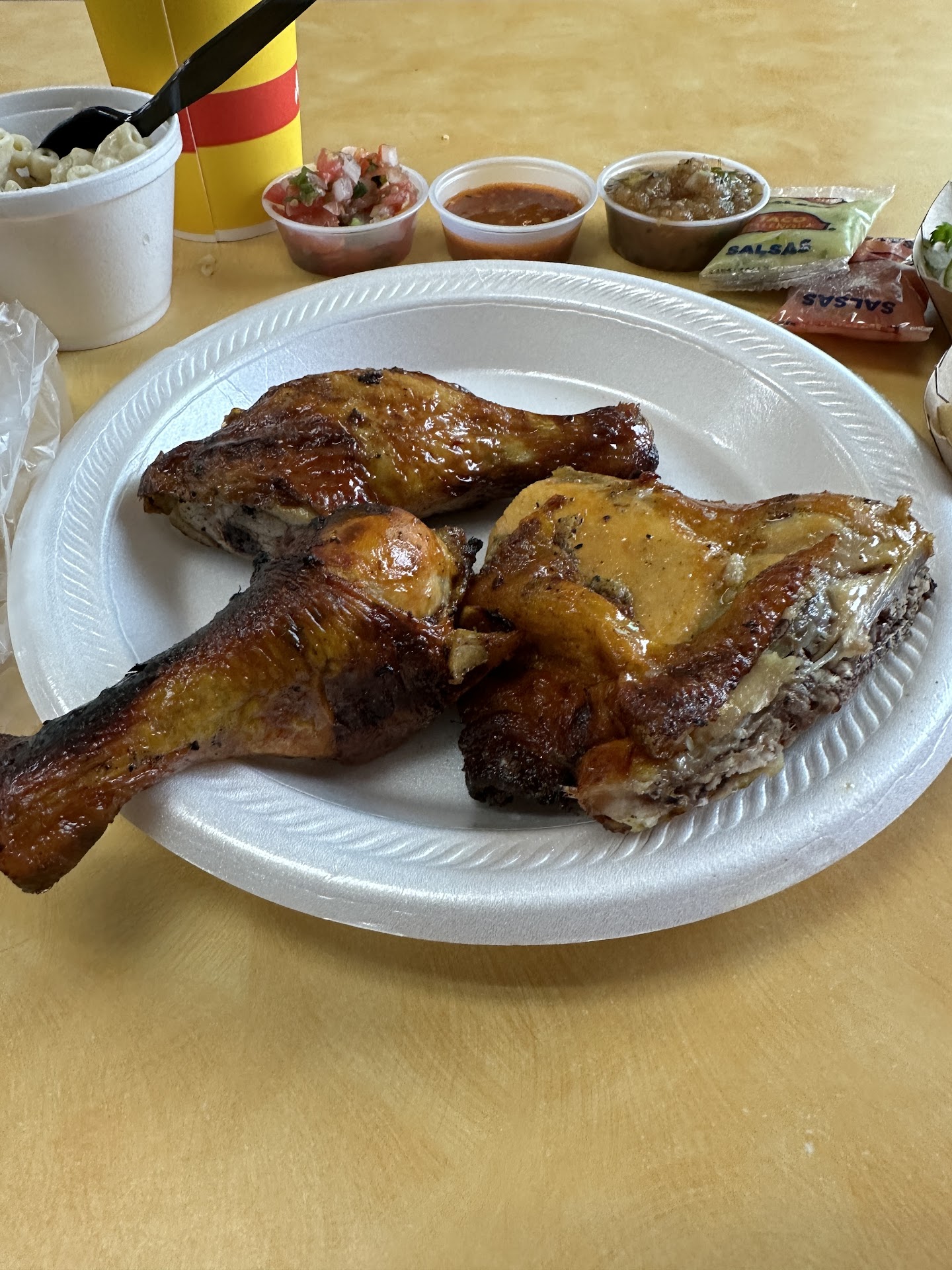 The best meal I ate in McAllen was honestly from Pollo Palenque! The chicken was so flavorful! This place is like El Pollo Loco, but so much better! The fresh salsa bar and the free chips seals the deal, and my sides of charro beans and mac salad were both great as well (even though the mac salad had ham in it and I'm really not into that, it was still good).