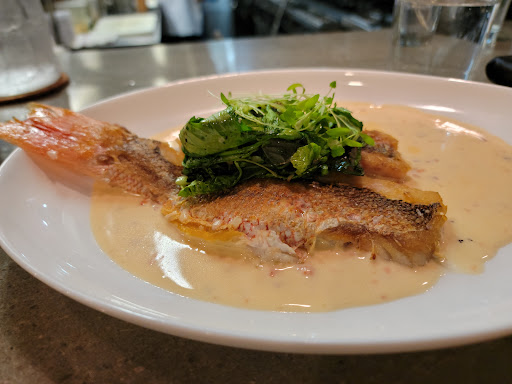 Read moreSat at the chefs bar top and got to sample some Mac and cheese that had perfectly cooked bacon as well as beautifully melted cheese with some kind of breading on top not sure on the type of cheese but very delicious. For an appetizer I had the Quail Knots which are apparently Quail legs/thighs over an Asiago polenta (which is basically a cheese porridge) and a pomegranate gastrique. ( Which is basically a caramelized pomegranate sauce) They all pair very well with each other and I found the best way to eat was to have a little bit of everything insde your mouth instead of placing one thing in your mouth at a time. I've never had Quail before but this was a very delicious bird. Succulent and supple I'm very happy that my first experience with quail was here. As a big food guy I highly recommend sitting at the chefs bar if you love food because there's something about being able to see your food being cooked that makes you appreciate it more. The chefs also change gloves for cooking constantly which is a very good sign that they keep things sanitary and cross contamination to a bare minimum. As an entree I had something off menu as it was limited in quantity at the time but I had a fresh yellow tail and over all the fish itself was an 8 out of 10. In my opinion they used a lot of spices that while great on their own overpowered the fish if only a tiny bit. I love a good yellow tail myself and it was perfectly cooked in every way. It laid atop a sauce of some kind (wasn't on the menu so I couldn't say) and I found myself drizzling the sauce itself over the fish because I was very fond of it. Unfortunately I was a little overzealous with the Quail that I forgot to take a picture but here is the yellowtail. All in all a place I highly recommend because so far it is the closest to very fine dining I have tried in the valley and I hope they continue what they're doing for many years to come. I ended up wanting more because I myself am a very big eater so i also had their 16 Oz sirloin medium rare. the steak was perfectly seasoned with their own blend and cooked to perfection. even the asparagus and potatoes that are meant to be a side came out complimenting the steak extremely well. I found myself wishing I had more of those sides so I could fit them all in my mouth at the same time. excellent and friendly service as well. would...