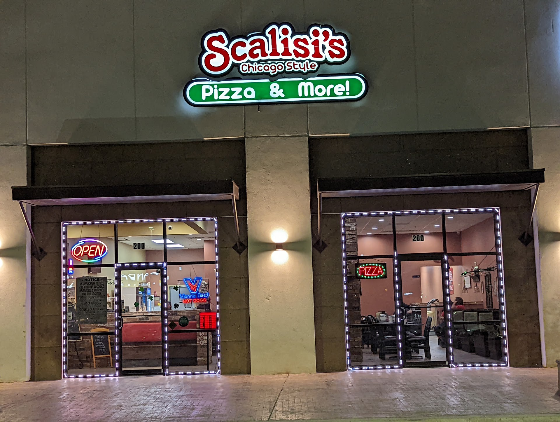 Read moreScalisi's restaurant is located in the plaza that is just off of Trenton and Main. It's entrance is on the street next to Panda Express that leads to Sam's Club. This is a true Mom and Pop pizzeria because Mom and Pop are there working. I went for take out and ordered the Deep dish Chicago style pizza, lasagna, and a small Greek salad. I was told it would take around 30 minutes for my order to be ready. I don't mind waiting, because I know good food takes time to make, plus this is a deep dish pizza made from scratch. Once I received my order I couldn't wait to get home and get my grub on I like that the lasagna has black olives and mushrooms, two of my favorites, plus I love lasagna, so it's like three loves in every bite. The deep dish pizza is the real deal, loaded with lots of cheese and I really liked the chunky tomato sauce. (I also love tomatoes), the Geek salad had all the right components, including two types of olives, greek and black, again I love olives, so it made my salad day. The thing that really surprised me the most was how low the prices are on the menu. The lasagna is way under $10 where most places have it over $10. The same goes for pizza. I look forward to trying the Italian beef sandwich, I wanted to get it but I had my heart set on lasagna and pizza. I recommend this place because it's a real deal with a Mom...