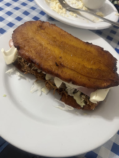 A must try! The food was delicious. The portions were more than generous. I had never had a patacon before but I saw a picture and needed to try it. It was delicious! We also ordered plátanos for the table they were so sweet and fried perfectly. My friends ordered arepas that looked delicious as well. Please check...
