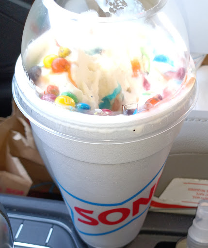 If you are craving the Reese's overload blast, do not order from this location. I took my nephew so he and I could enjoy one. I usually get the Overload blast at the location on 10th St, but the Ware Rd location was closer so I figured it would be the same. Nope, not even close. I ordered two mini Reese's overload blasts with extra peanut butter and asked for whip cream to be added. Yoana is the server who took my order. I let her know the size was a mini and repeated to please add extra peanut butter and asked to please add whip cream. She proceeded to ask me the size I wanted, to which I repeated a third time for both orders to be minis. Yoana let's me know it will be about a 10 minute wait because the ice cream machine is being adjusted. No problem. I proceed to pay on the automated screen and wait. The total was $9.07 and it didn't dawn on me that was a little pricey for two mini blasts. After about 10 minutes, our order arrives and there are two large, not mini, blasts in front of me and then I realized I paid almost ten bucks because the order was for two large and not two minis as I had clarified three times when placing my order. Fine, my mistake for not realizing the price. Well, Yoana had let me know it would be about 10 minutes, but honestly, I think the order sat ready for 10 minutes since the ice cream was pretty much melted and we did not get the overload blast, just the regular Reese's blast. Upon studying the receipt, Yoana not only charged me for extra peanut butter, but she charged me to add peanut butter too. This is a little odd since the Reese's overload blast already comes with peanut butter. Very disappointed. Disappointed that I took it for granted Yoana had heard my order correctly and that I missed catching how much I was paying. I understand places are busy and a million things are happening at once, but don't be in such a rush to take an order just to be done so you can move on to the next order. $10 for a melted ice cream blast I did not order. Sonic on 10th St, I will be seeing you soon. You all know what...