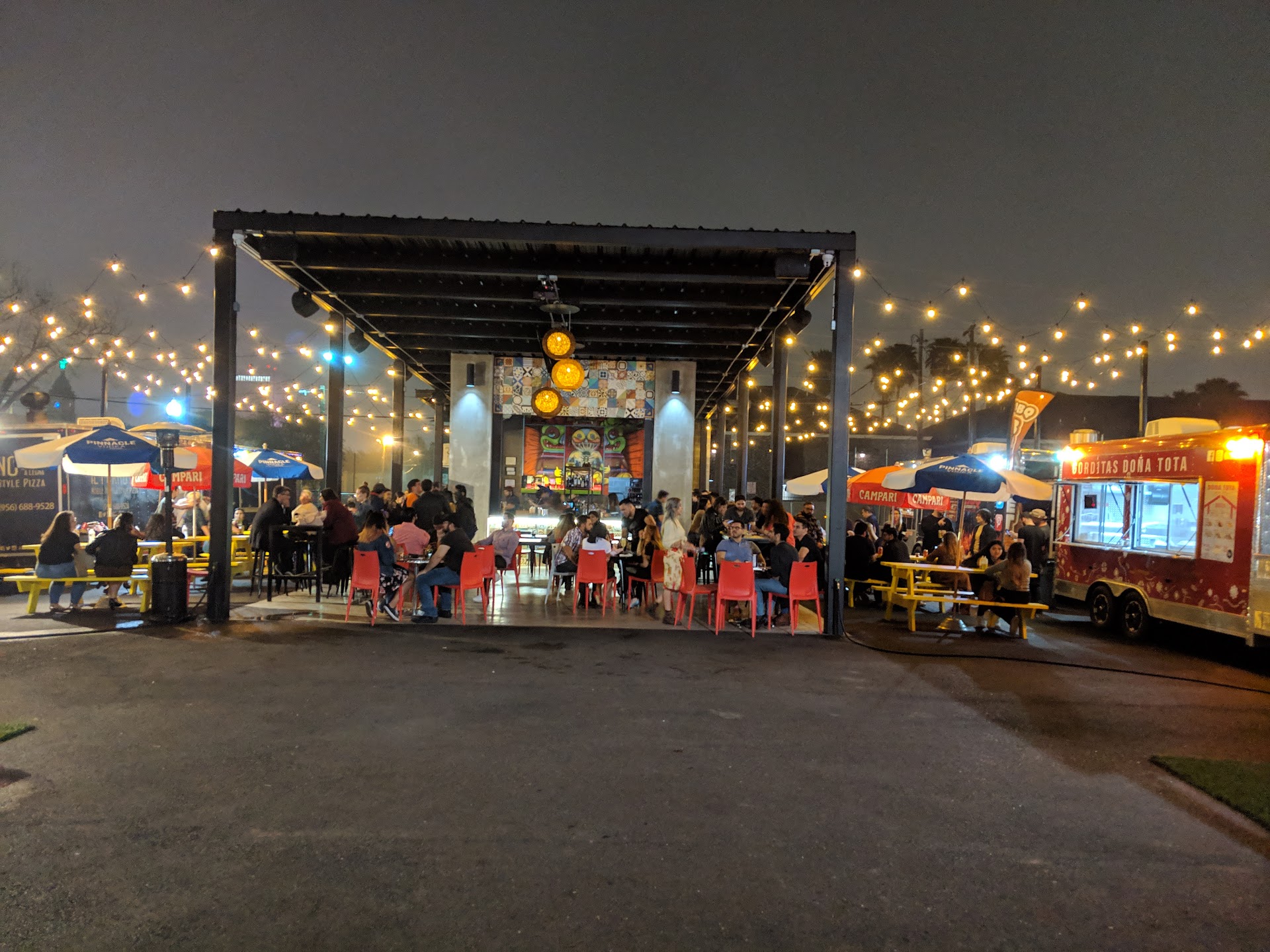 Read moreI like it..... somewhat different food in an area about the size of 1/2 a footbal field. Several food trucks. 1 serving tacos. The other selling burgers. And the others have an urban modern touch to the food. Large bar in the back and a limitdd selection of drinks. But ut gets the job done. They have mostly all the domestic beers. And the they have different mixed drinks. The environment was pretty comforting and foos was great. Price is about what you would expect at a taqueria.there is also security thats watching over the place. Good musoc also and several tvs. Over all i would go back again and i would recommend other people...