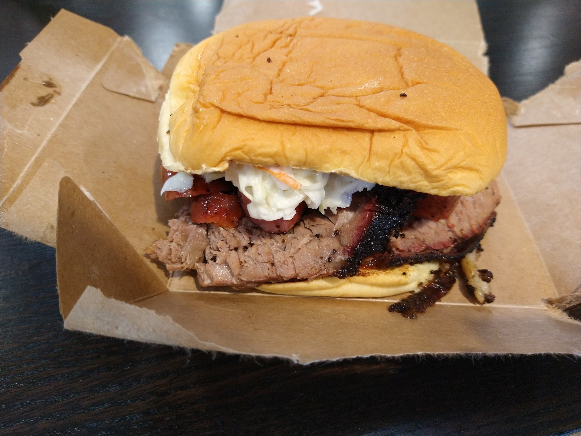 I ordered 1 pound lean brisket, 1 pound turkey, 1/2 pound chopped, sauced brisket, 1/4 pound burnt ends, half a rack of ribs, and one texas torpedo. My total for the entire order came out to $88.90. I think the workers gave me the fatty brisket instead of the lean because there was a bit of fat to the brisket, but regardless, it was juicy and well worth the price. The turkey was phenomenal! It was extremely juicy and tender, mouthwatering. The chopped and sliced brisket was especially good, I loved the saucy nature of it. The burnt ends were no different. They were very juicy and tender. The ribs were a little spicy for my liking, but Tabasco sauce is kinda hot for me, so take that as you will. The ribs were still deliriously delicious regardless. The Texas torpedo was kinda bland for me. It is the only item I probably would not order again. The only reason I gave Texas True bbq 4 stars instead of 5 is because I'm fairly certain I received the fatty brisket instead of the lean and because when I went to pick up my order it was discovered they had given my order to another person. The workers were very expeditious in getting my order ready, so I think that's where the mistake with the brisket happened. As a precaution, make sure to say your name and show your receipt because the person who received my order had only ordered two pulled pork sandwiches and got away with two full bags of bbq and trimmings. To that person, Anita, I will say: nobody likes a dishonest person, and you should have easily surmised that your two pulled pork sandwiches were not in the two full bags that you took. Other than that, my food experience was great, and I will definitely be ordering more bbq from...
