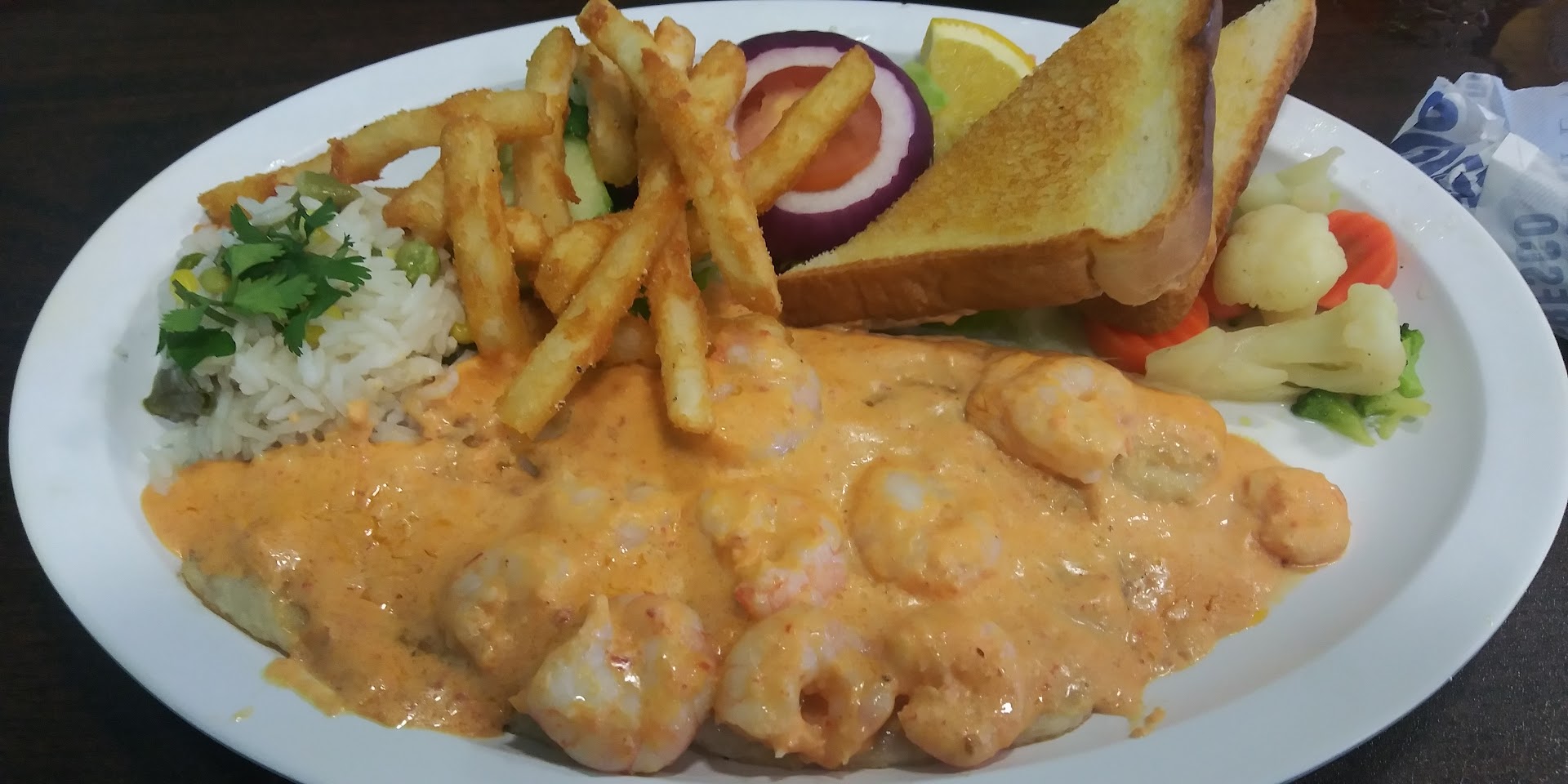 Let me start... U get a small dish of refried beans...with homemade corn fried chips... U also get an 8 oz bowl of seafood gumbo...on the house... These appetizers are at least 9.95$ in my eyes.. Then comes the great plate with shrimp and fish combo. It is made very well..taste is just right...what u see in plate is what u get... Then my cola of course... All this for only 23.95$