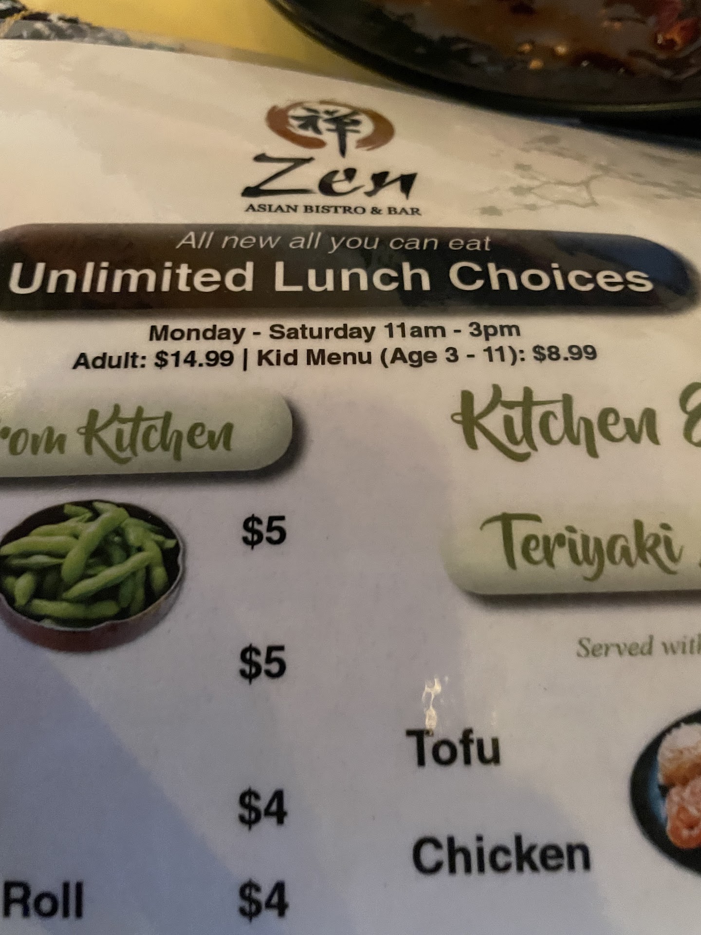 Read moreSo this is based on the lunch version of their all u can eat menu. At 15 bucksa person, it's about in the range of other all you can eat and buffet style places. There appears to be a new trend at stores for all you can it. Basically, following the "Never Ending Pasta Bowl" design from Olive Garden. It's not a buffet. It's a set menu where you tell a server what you want. The kitchen prepares it fresh, and it's brought out when it's done. Now, my review is leaning positive based of course, on my personal experience, going only 1 time. However, I've seen this setup at a couple of other places I've reviewed, and there are problems. First, the positives. We went right when they opened at 11 a.m. on a Friday. Our server, May, was wonderful. She was very patient with my mother, who had trouble understanding the concept, very knowledgeable about the menu items, fixed mistakes right away (more on that in the cons), and, as far as I could tell, was one of only 2 servers present at the time, so was juggling quite a few tables on her own. The manager was also on the floor and available, which is always nice to see. The menu was a decent size, and the flavors were tasty. I was actually pretty impressed on the number of sushi rolls available to order. Be aware that there's no beef or pork options on the lunch menus for plates, rice, or noodles. Only chicken or shrimp. As for the negatives. This is personal taste, but I really didn't like the interior or the layout. It's smaller than you might think, and tables are cramped together. It's also REALLY dark inside. I assume it's mood lighting, but I call it just hard to see. While table service was excellent, the kitchen and sushi bar were having a hard time, and this is where an all you can eat setup of this type has its problems. 3 times I received the wrong order. On top of that, as the place filled up, you could tell the cook staff were being overwhelmed. Both the kitchen and sushi bar orders were taking forever to get out. We were lucky we went in so early, or this review would be much more negative, I think. However, the quality of the food itself and Ms. May's excellent service pushes it over the edge, and it's a positive recommendation overall. ...