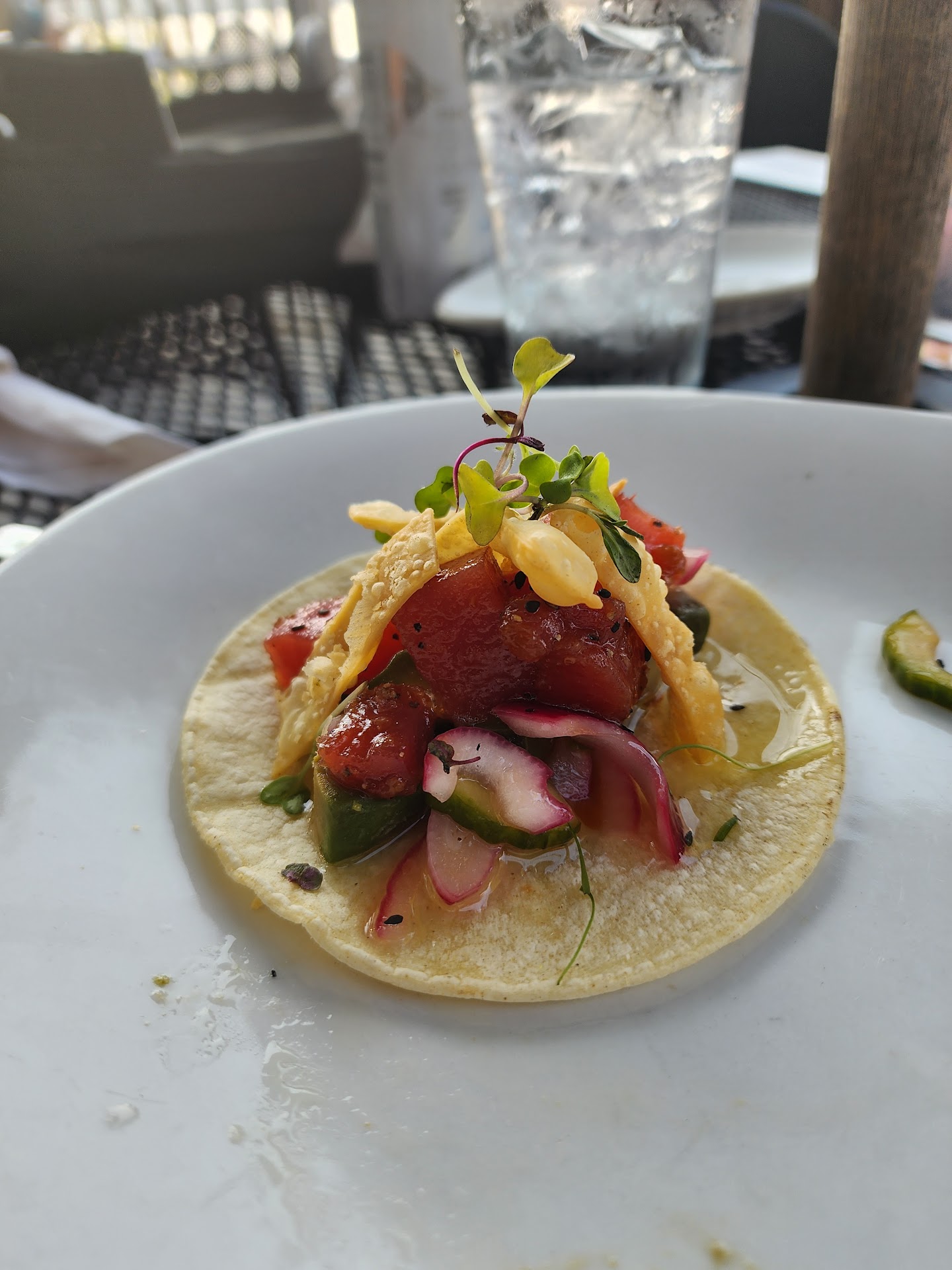Read moreLike another reviewer here, our awful experience started with the hostess. We had reservations and asked to sit outside as it was not busy and it was a beautiful evening. The hostess responded and said there’s a storm on the way and she couldn’t sit us outside for dinner although there were other people and eating dinner out there. We let her know if it started raining or storming we would move our party indoors. She took us grudgingly to a table and we were promptly seated. We did not get any food menus only drink menus. Our server attended us promptly. For drink orders. What the website/menu fails to tell you is that their cocktails are not made in house and come out of a can. So if you were not a beer or wine drinker and are looking for a mixed cocktail, don’t go here. They are full of sugar, highly diluted and just blah. We ended up ordering food, there was an order change while we were going around the table. When the food came out one of the items that was changed was brought to us in error. When food was brought, we still didn’t have napkins or silverware. One person in our party ordered a second drink it took approximately 20minutes to get a glass of Prosecco and we had to ask for a second time. Mind you, it was NOT busy at all there were about 6 tables of people. Food was bland, basic, and majority of us didn’t finish our meals, nor did we get it to go as it just wasn’t good. Best thing about this place, the view. It just seems like they are super unorganized, flighty (server, although she was nice) and have a bit of attitude (hostess). Save your money and go someplace else for food. If you just want a glass of wine and a...
