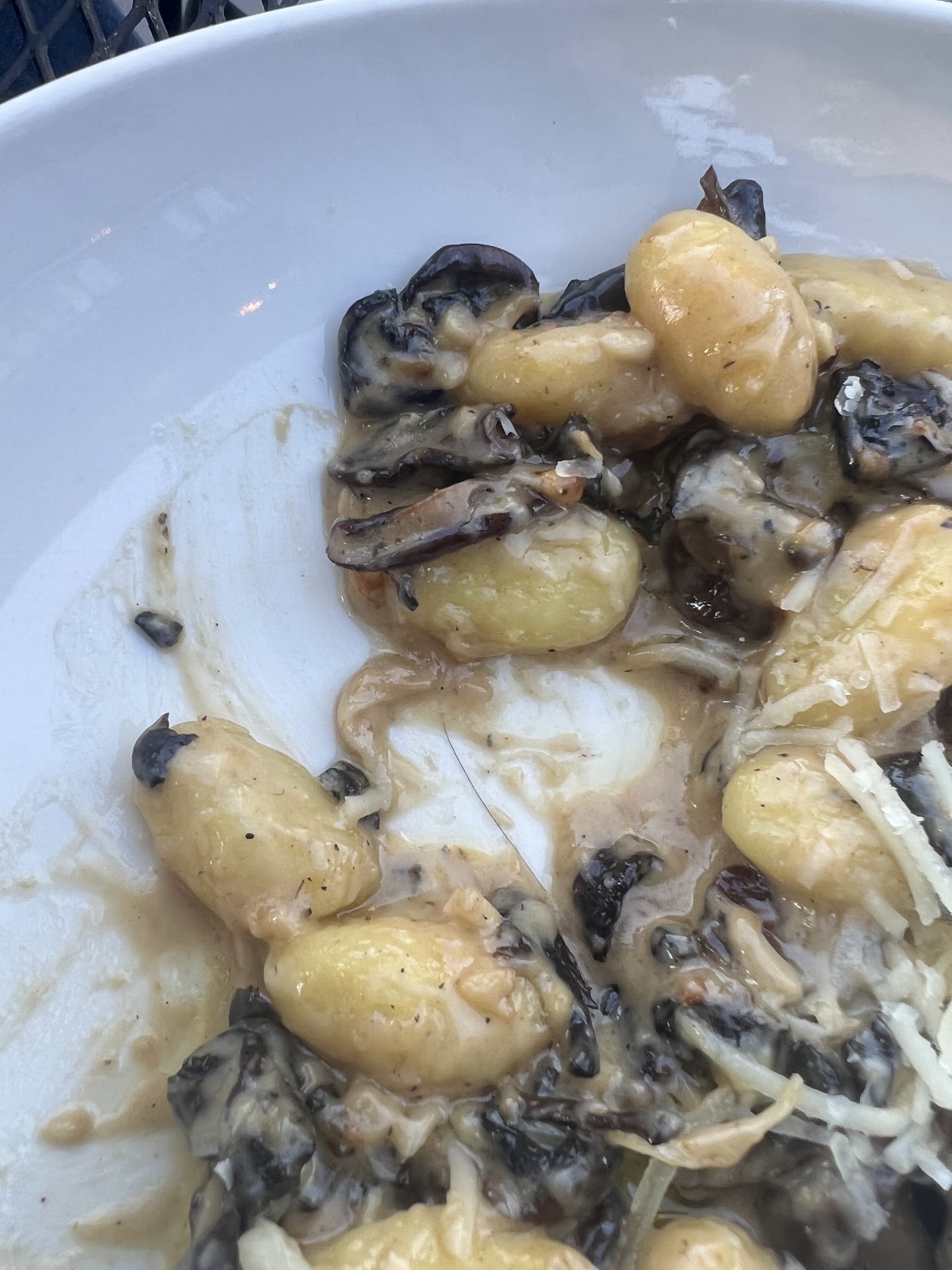 Now, onto the food. We ordered the Tuna Poke Tacos, which were okay but nothing special. The avocado was not ripe yet and was hard. I would give them a 2; I've definitely had better (sorry, it's the only picture I took). The main course took about 40 minutes to come out, if not longer; we lost count. Fortunately, our son's food came out quickly; he had chicken fingers and fries, which to me, they were the best part of the meal. While waiting, we noticed a waitress who seemed lost, bringing the wrong food to tables and appearing annoyed and disinterested. My wife ordered the Shrimp Pesto Pasta, which she enjoyed, but I wasn't a fan. I had the "Shoemaker Ranch" Bison Ribeye cooked medium rare. It was okay, but it was overcooked and under-seasoned. The mashed potatoes were bland and lacked flavor.