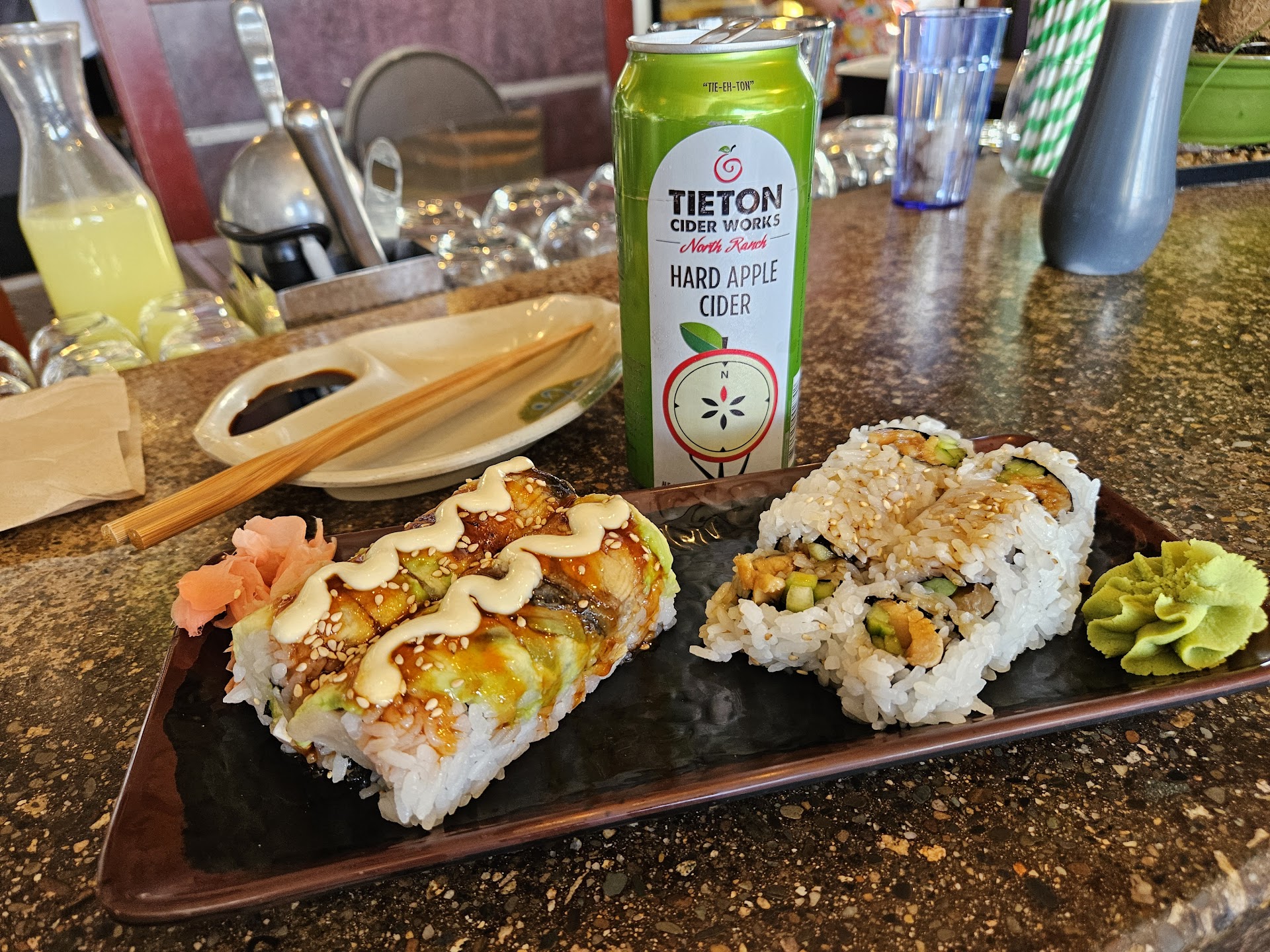 Read moreFirst time at this sushi restaurant, visiting from California. Stepped in and noticed that no one working there is Japanese. Thought it was strange to only see caucasions running a sushi restaurant. But ok whatever. We got 4 different sushi rolls from the happy hour menu for $8 each. They were the tiniest rolls EVER. They tasted just okay. The specialty rolls were around $18 each. We were debating if we should get get a specialty roll but we both went with a noodle bowl, mine with prawns and my husband with eel (but it was really catfish -- they need to call it for what it really is otherwise its deceptive). The prawns in my bowl were so skinny. Im used to big prawns at every japanese restaurant ive been to. Ok whatever. I couldnt wait to dig into the noodles. Wrong. The noodles were plain with nothing but some kind of mayonnaise on it. Seriously? No umami, soy sauce, miso, fish sauce, hoisen or rice wine vinegar flavor that you would normally expect in a noodle bowl at a Japanese restaurant to bring out asian flavors. Instead mayonaise! Yes you heard me. Mayonaise!! Who puts mayonaise in noodles? That is a serious crime. My husband tried his and yep. He said his was the same thing. Mayonaise! It was so disgusting we both couldnt eat it. We both just ate the few toppings (which wasnt much) and left the mayonaise noodles behind. What a waste of $18-$19 bucks for EACH bowl. No question this was the worst "Japanese" restaurant I have ever eaten at. Definitely not authentic. Whatever you do, DO NOT GET THE NOODLE BOWLS. The only reason I'm giving it two stars is because the sushi was average (not great or outstanding, but then again it was the happy hour version) and our waitress was nice and attentive. We didnt have the heart to tell her that the noodles sucked big time and that we never want to come back. Ever. Sorry but that is the truth. It might help if they hired a Japanese chef that knows what hes doing....