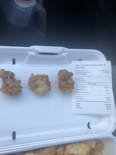 Read moreFirst time visitor from Louisiana originally was planning to go to whiskers but it was close then seen another whiskers inside a gas station and thought about entering but decided to pass and look for another seafood spot then Catfish One Pops Up went there seen a small building I wasn't expecting much from it but once I walked up I was very impressed with the seafood portions and prices so I order and let me say next time I'm back in Mccomb I will be visiting again it had so much flavor for a small...