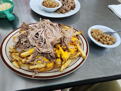 Visited the area . Googled this place . Brisket on a bun , fries with beans . Fries were awful, undercooked greasy . Beans were tasty . Brisket plentiful but tasted old . To go order . Was not told that sauce did not come with bbq sauce or that I had to get myself from another area . Found out the next day that my sister had gotten salmonella poisoning traced back to this place . Enter at...