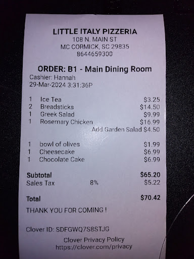 Ā Ā Ā Read more1st weāve been in this restaurant quite a few times, for awhile it was once a week. Always āokā the people were friendly, for food certainly NOT 4 stars, but good. However, after a couple month break, we went back last evening, first there was NO PIZZA, for a pizza place welllllll. Ok. We ordered, sat an chatted for almost 30 minutes- 30 minutes, when our waitress comes over an tells me they no longer have my entrĆ©e. Again 30 minutes, I said you could have told me 20-25 minutes ago. Wow she pops off and just loses it. NASTY young lady, well certainly not a lady, āitās not my fault they didnāt tell meā She spits out. I just looked at my wife, an ask if she just wanted to Michelleās, another restaurant in this small town. Sure, my wife never says anything but, she was really upset with this young girl's attitude. What a witch. I left enough on the table to cover 2 soft drinks an we walked out. Definitely off our Iist, I doubt this place will last long with this kind of attitude. Donāt...