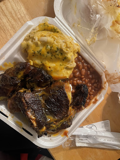 Ā Ā Ā Read moreThis place was amazing, very cozy and welcoming. It feels like youāre dining at a family friendās place. The inside could have been a bit cleaner but itās definitely comfortable to eat in. The staff were friendly and warm welcoming. I chose a table then went out to my car to grab something, when I came back the food didnāt even take five minutes to arrive. They are definitely quick. The menu isnāt more than twelve options but itās a strong pick. They do their selection well and everything is excellent! Theres plenty of seating inside and out in the back they smoke their meat fresh. The meat was juicy and tender and you could taste the smokiness upon first bite. All their sauces are home made and pair well with the meats and sides. The owner was there and enthusiastically greeted us. Heās a really nice man and Iām glad to be doing him business. The entire establishment is a 10/10 my family and I are definitely coming back! (Just found out they have a special weekend menus with oxtails, smoked turkey wings, collard greens, and cornbread. Will be returning...