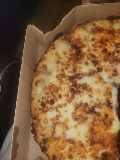 Read moreI ordered a pizza today. Thin crust extra olives and green peppers with no cheese. This is what they left at my door. I opened it and it was the first photo. Broken, burnt, and basically on one side of the box. I spread it out to see how bad it really was. I called and was told thin crust pizzas always burn and if you don't put the sauce close to the edge, it will turn out that way. She told me that she doesn't recommend thin crust because of that. She said I can have a credit so when I came back (HA!), I'll have that credit towards another pizza. Or come into to pick up another one. We'll I came in and was given a pizza half as burnt with very few olives and peppers. I ask for a refund and was told by the cashier "you got your order, we don't do refunds". I was not going to leave on that note. Another person making orders came and told me that the woman I spoke to said if you don't have cheese, it will burn. Not true, she did not say that and when I tried to explain what she said, he said fine I'll give you a refund and it will take up to 7 days. I will NEVER go back there. And just a note, I've had thin crust pizzas without cheese at other domino's and they weren't...
