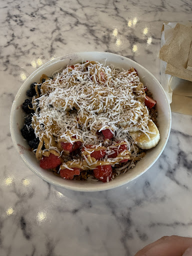 Took a bite into the HUGE acai bowl and it was soupy already. The bowl was chilled/frozen so by the time I got it it already was starting to melt. I would recommend a few things for the store. Raise the price of the regular acai bowl. OR make the bowl smaller. That much acai, fruit, homemade granola, and coconut is a lot. A lot to eat and acai bowls don't save for leftovers. The food cost has to be terrible and I don't want to see it disappear from the menu. And you have to chill/freeze the bowl ahead of time if its going to take that long to make. If you make it smaller, it wont take as long to make and it wont get soupy. If you freeze the bowl and keep the portions the same you have more time to put it together without it melting. Ive never had that big of a bowl and I felt guilty if I didnt eat it all. I was sooooo stuffed. It was delicious, but seriously. Chill out. Make sure its a good food cost item and makes money on the menu. I hate when good items get removed because they lose money to the store.