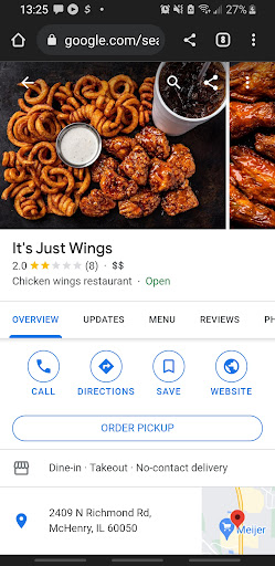 Read moreThe website doesn't bother telling you until your order is placed that it's literally just Chili's. Fries were all soggy and awful, the wings were half soggy. I got two very different flavors and couldn't even taste the difference between them. And despite showing up 20 minutes after placing my order (like the website said) and driving straight to my place which is less than 10 minutes away. Somehow it...