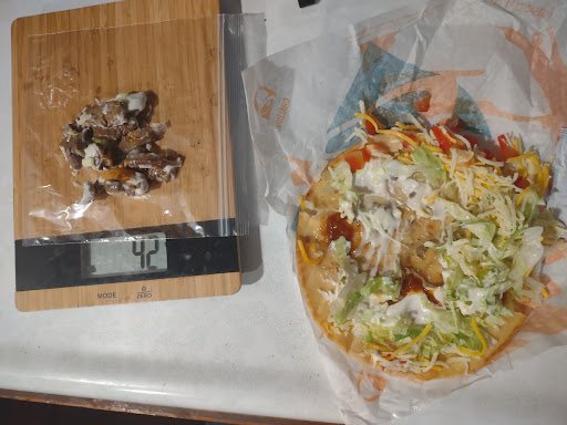 Read moreMexican Pizza packed on the bottom with a burrito, two tacos and quesadillas stacked on top. Ordered on Uber eats Taco Bell 1.8 Miles down the road yet had a 28 minute wait. I received notice so I'm sure they did at Taco Bell as well, but some nerd decided to cook my food and then let it sit in a bag on a counter for 28 minutes. So I ended up with a Mexican pizza The consistency of oatmeal mush, soggy tacos and the entire order was ice cold! BOOOOOOO on all accounts. I even sent a text to the Uber driver and asked him to make sure that everything was fresh CONSIDERING THE ABOVE which apparently he didn't have time to do worst 24 $ I ever spent. IF YOU'RE GOING TO BE A MULTITASKING UBER DRIVER AT LEAST BE CONSCIOUS ENOUGH TO MAKE SURE THE FOOD YOU'RE DELIVERING IS STILL HOT. For this I got the whopping $6 refund from Uber....