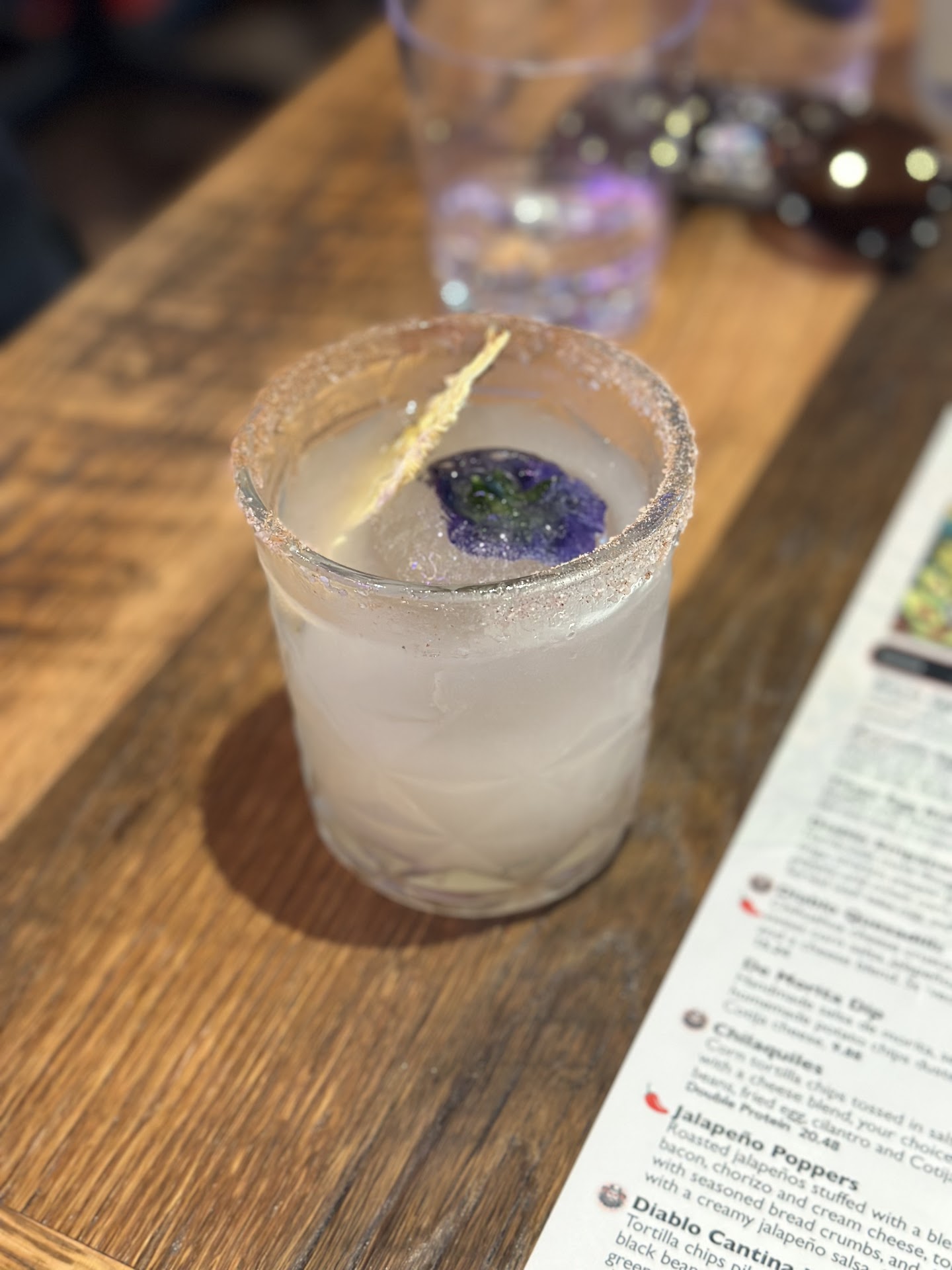 For one, paying for chips and salsa at a Mexican-inspired restaurant is comical, but okay, house-made (aren’t most Mexican restaurants’?), $5, let’s try it. They hardly give you any chips, but a ton of salsa, which all three were SO spicy. A carafe of water was not left at the table either, and the water cups are small. As a former server, whenever I go to a restaurant and have to ask for refills, it’s a big turn off. Once the margaritas finally came, someone (not our server) dropped them off. He couldn’t seem to differentiate the Pineapple Express from the Pepino. He mixed them up and The pepino had my pineapple garnish it, as they were out of cucumbers? So my husband got no garnish, because he gave me back the dried pineapple that was supposed to go in mine… Im still not convinced I got the right drink either.. The ice cubes were cute.. had a flower in it. But my drink (the alleged “pineapple express”) was pretty flavorless and underwhelming. It tasted pretty watery honestly. For a $13 margarita, I had higher hopes. I’ve made from-scratch margs at home with more flavor.