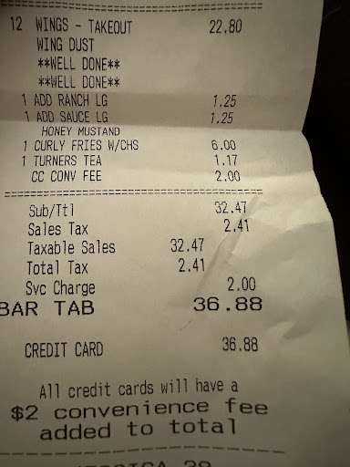 Read moreLike being in a B-rated movie of bars. Food was average at best while still being overpriced and they have signs posted (cheap computer print outs) of long demands about their ordering wings lol. Paranoid business practice. Meanwhile, the service was very slow even though their wasn't hardly anyone else in there?