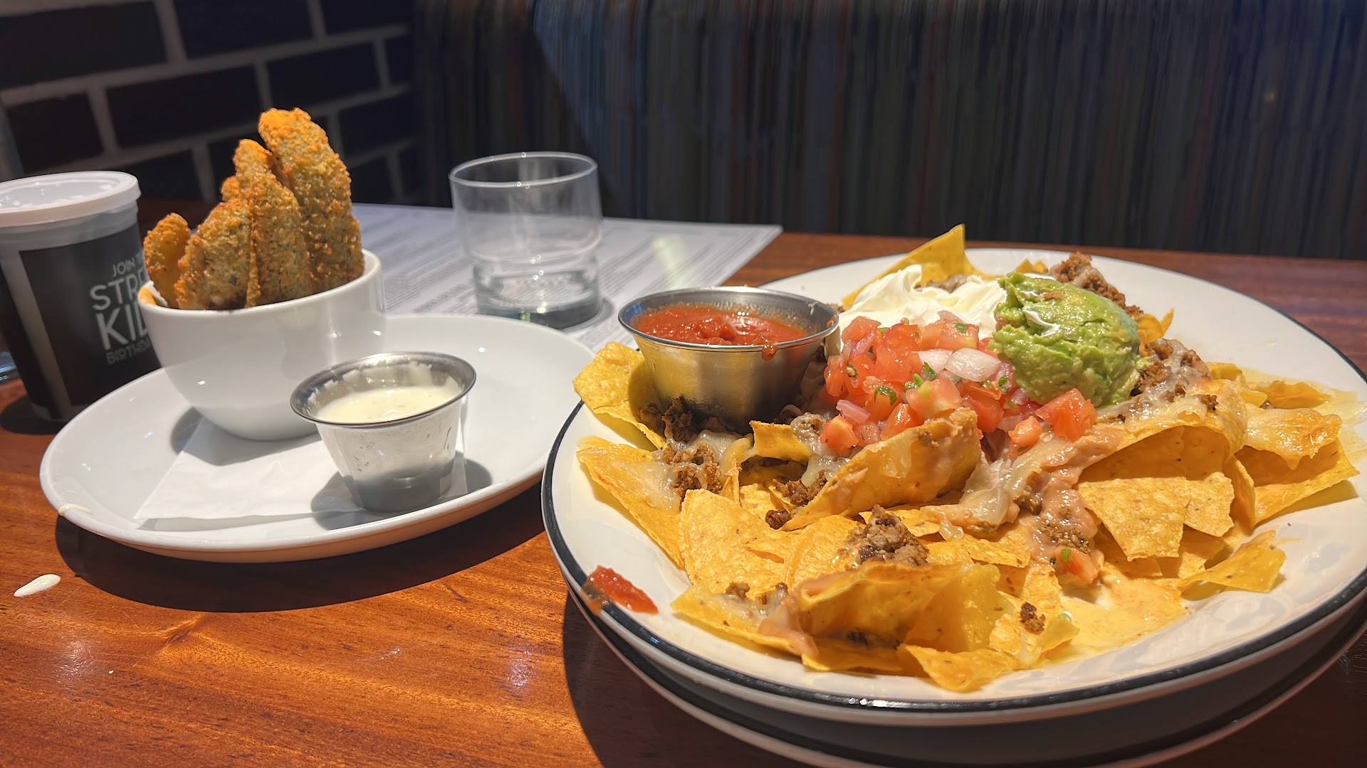 We've eaten at-location twice. The location is about what you would expect from current day sports leaning bars. Lots of TVs, especially around the bar, an eclectic mix of memorabilia on the walls, and Americana leaning music, mostly country and classic Rock with the random top 40 from fifteen years ago mixed in.