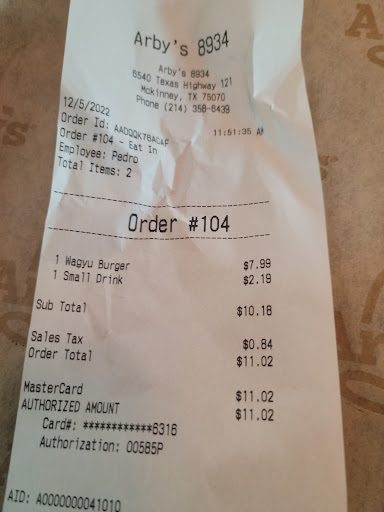 Read moreI worked at an Arby’s a long time ago. I know things have changed and I hadn’t gotten it in a while. But i decided to give it a try since it’s been so long. I ordered my favorite item: smokehouse brisket. I didn’t receive a smokehouse brisket. It was dry, no sauce, no cheese, no fried onions. It was shredded dry meat. The chicken was cold. And so thin in a part it’s was over cooked. This being my second favorite was another disappointment. The portion of roast beef on the regular sandwich was not good. Not sure if it’s changed but that felt like a rip off. They shoved everything into one large bag. This I know is not how things are done. Due to the issue of number 4 EVERYTHING was squished. I didn’t receive the as sue that comes with the French dip. The French dip hand one piece of cheese on it. The good: The apple turnover is exactly like I remember. The orange cream shake, curly fries and mots...
