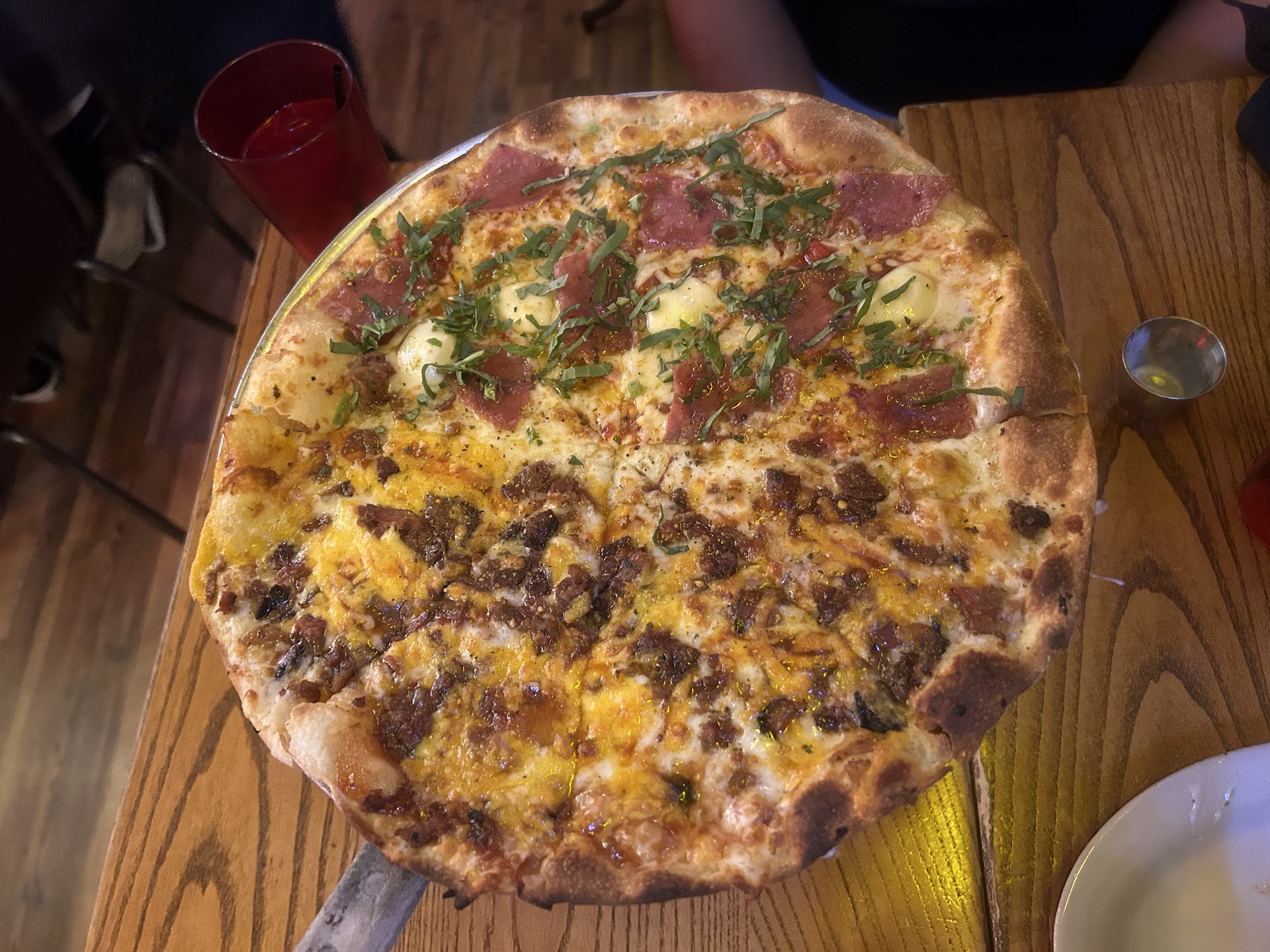 Read moreSuper rude hostesses who act like it’s a burden you are there. Stopped by around 9:30pm on a Saturday night for a party of 2. The bar was full and we were told it would be at least an hour to get a table. No problem, we got on the waiting list and went to the Yard for a drink. About 30 mins later I got a text that our table was ready and to proceed to the hostess stand. Awesome! When we arrived they said it was for an outdoor spot, but having been out in the sun all day, really didn’t want to sit out with the heat and misters and we wanted to see the live band. After some eye rolling we were told we could try the bar again or just continue to wait. Bar was still full, but we were ok with waiting, looked like some people were maybe finishing up. It was 10pm. We sat waiting listening to the band and about 20 mins later a large group left and we thought great, we will get seated. About 5 mins went by and we were told by the hostess that the kitchen closed in 30 mins and there were 2 barstools at the corner of the bar by a post where we could sit. We went over as instructed and saw there were the 2 tables together with six chairs empty. We then asked could we not just split the table apart and sit there? Again, with eye rolling and attitude we were told yeah I guess you can sit there. Very disappointing!! Our server was great and our pizza came out quick and fresh. Pizza was delicious and we continued to enjoy the live music. We were done and on our way by 11pm. Sad that the hostess experience left a bad taste for us! A little customer service goes a long way! Shouldn’t feel like my patronage...