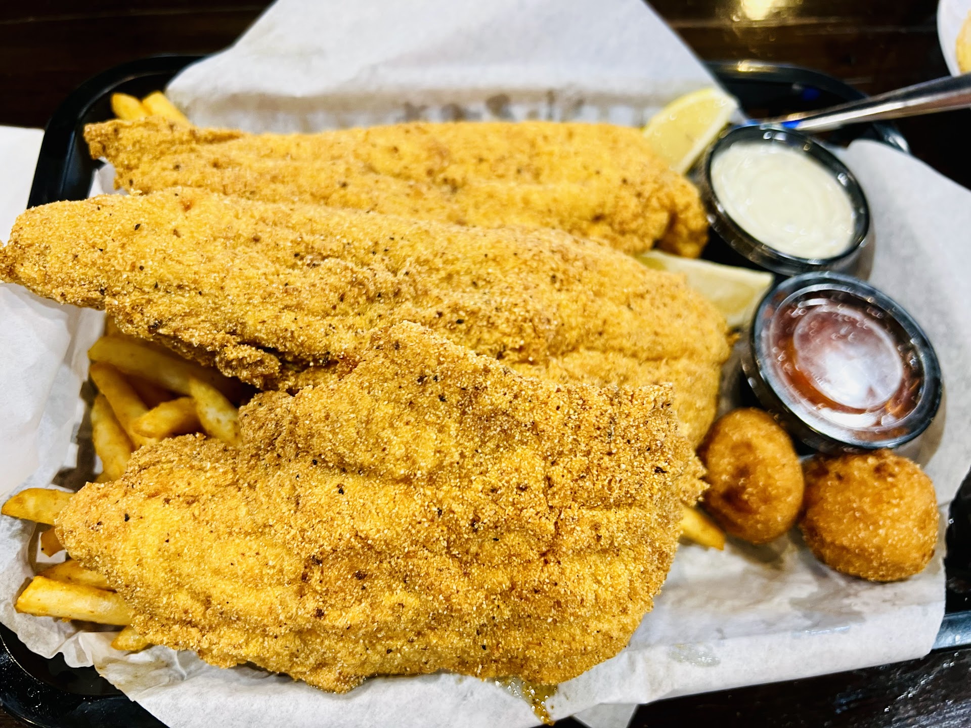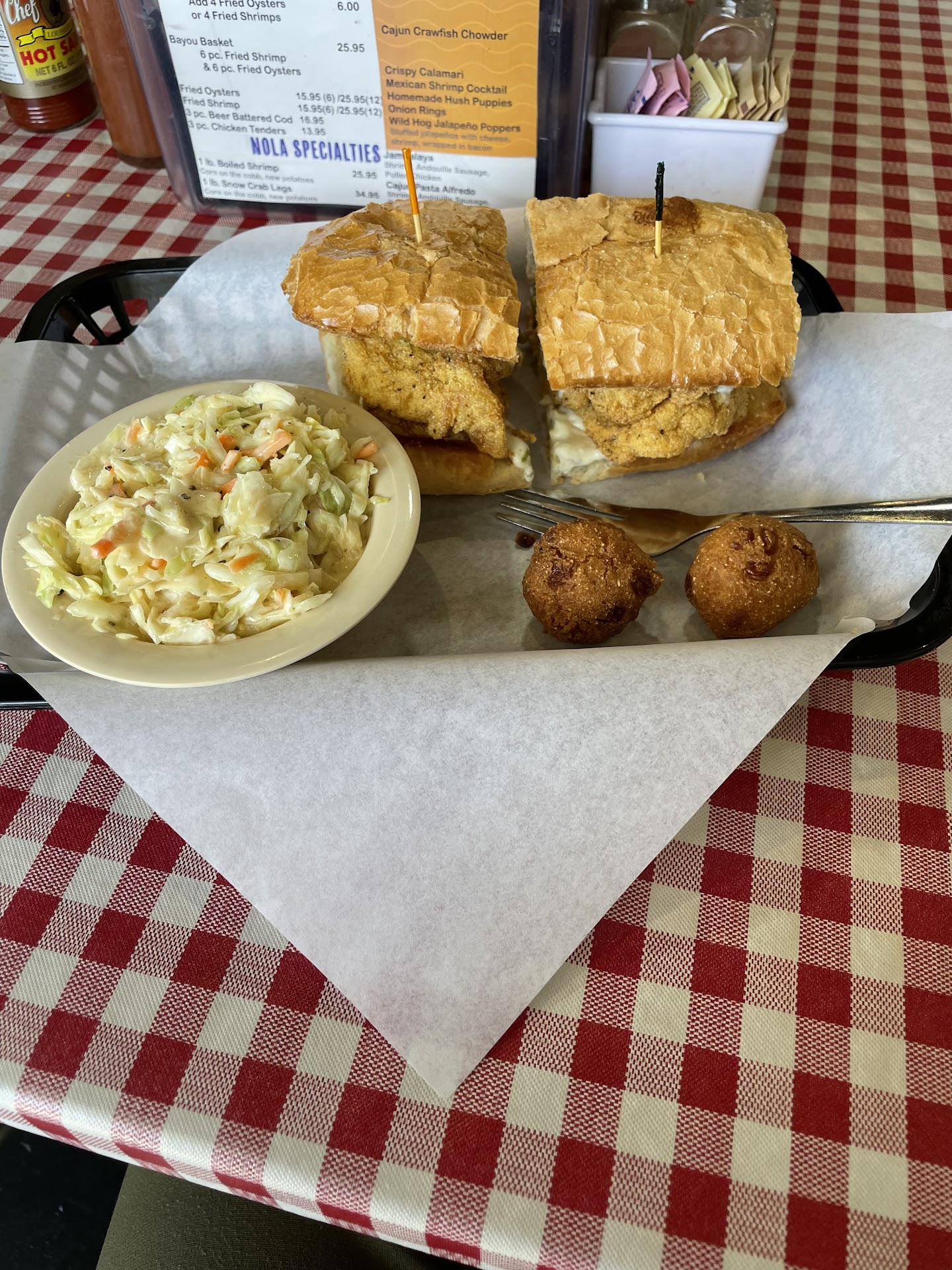Read moreService is excellent, friendly and helpful. Order at the counter and they bring it to you. Atmosphere is a little cold and sterile without much decor. Rustic wooden tables and metal chairs. I ordered catfish filet and it was some of the best I have had. Cooked perfectly, not overdone and still moist. Breading was tasty. Coleslaw however, was not so good. The cabbage was in HUGE pieces and many tough parts of the cabbage was included. They would be well served to slice it much more thinly. The coleslaw dressing was overpoured from someone's bottle and it would have been nice to have a house made dressing. The french fries have a really tasty spicy salt on them and are very good but they have many rotten black spots. They would be better off to get better grade of potatoes. The hush puppies had a delicious taste but were not cooked in the center and pretty gluey/gummy. Tea and sodas are self serve and they were fine but there was no lemon for the tea. I didn't see sugar either. Overall, this place has a great base (fried catfish) to build on but really needs to fine tune all the details to make it worth a second trip. There are many Louisiana style dishes on the menu that I did not try like jambalaya, etoufee, red beans and po'boys. There were lots of customers this first week. I hope they get up...