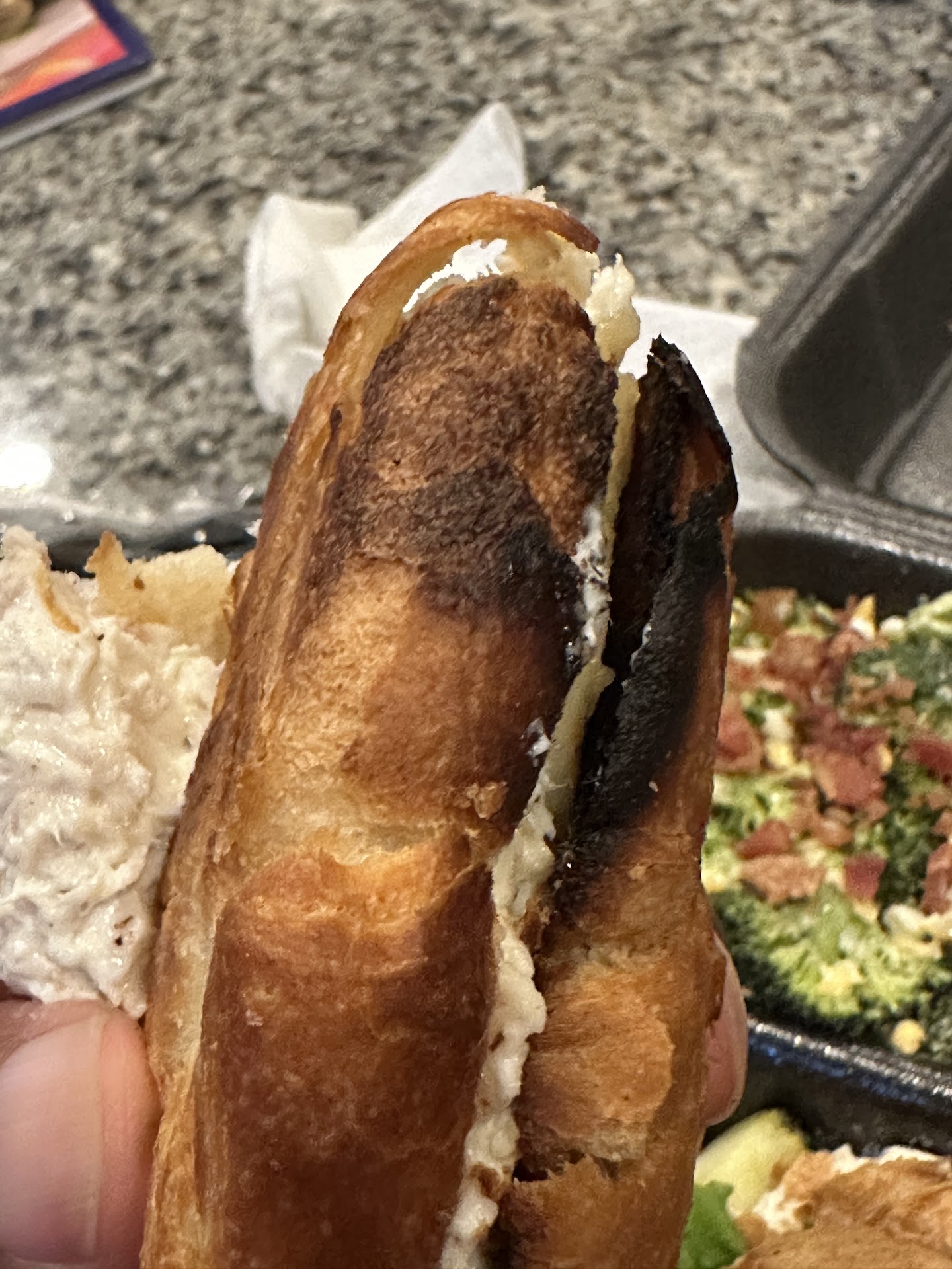We requested ASAP pick up which provided a 15 min estimate. We arrived about 20 or so minutes after purchase. We called to advise we'd arrived to which they said thanks and be right out. We sat in the car and realized it had been 10 minutes since we'd call. There was someone servicing customers so I attributed the delay to them being the only one on staff/at the front counter. An order had been sitting on the counter for five minutes so I went in to ask about our order. When walking in I realized there was another person at the counter as well. When I advised we'd been waiting 10 minutes the person I originally noticed confirmed the name for the order then advised they were out of the grape salad we'd order. This wasn't mentioned in the phone call nor was someone sent to advise us of this when we arrived. Unsure how long we'd have waited if I hadn't come in. I selected a different item. When we arrived home we also realized the cookie we purchased was not included in our order.