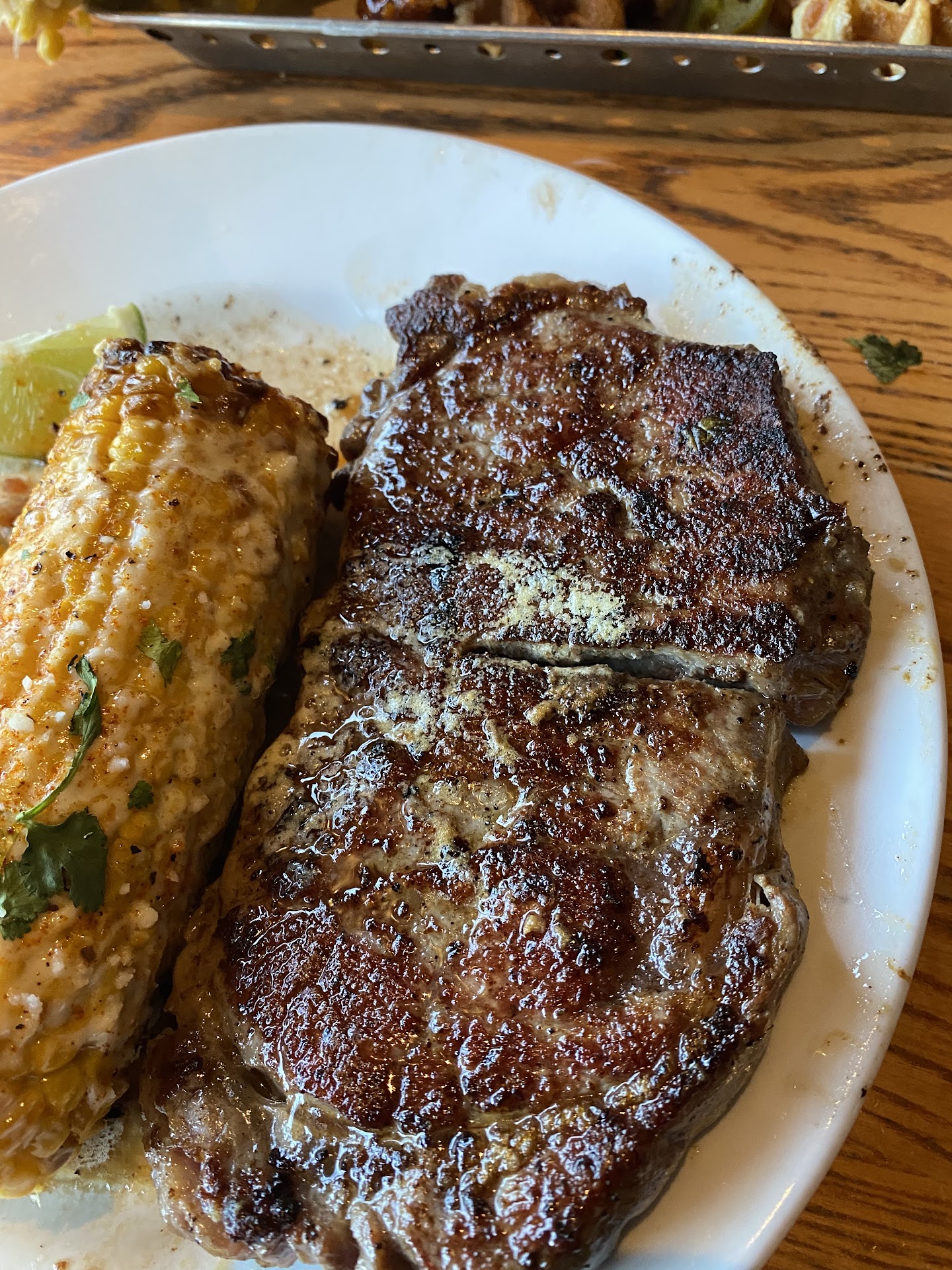 The food itself was great ! I will say, the steak had just a little too much seasoning on it. A little too salty for my taste. If you don't eat pork like me, ask for no bacon bits on top of the mashed potatoes, or you'll have to sit there and rip them off with a fork. It's a topping with the melted cheese. I should have mentioned that. The mashed potatoes were good. My baby ate almost the entire plate along with some avocado pieces. My other son ordered a pizza and mashed potatoes. These are really meant for kids, as they were soft with little to no crispiness. The fries can be a little salty too so we opted for adding no seasoning. They tasted great ! The blooming onion was delicious too. The seasoning on it made it a tad bit sweet as well.